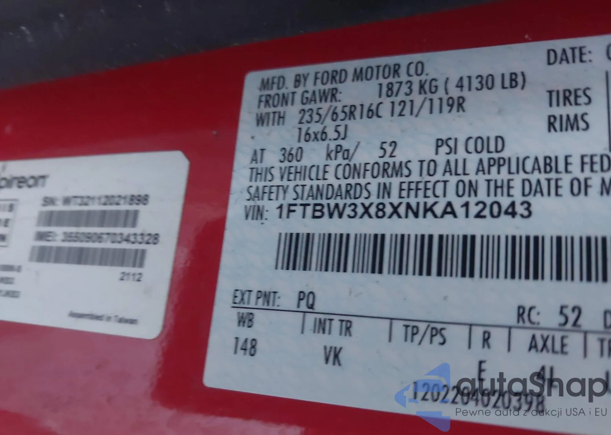 Автомобиль Ford Transit 2022 (VIN 1FTBW3X8XNKA12043) имеет документы, препятствующие регистрации. Могут возникнуть сложности при экспорте и регистрации. Обратитесь к экспертам AutaSnap для поиска альтернатив.