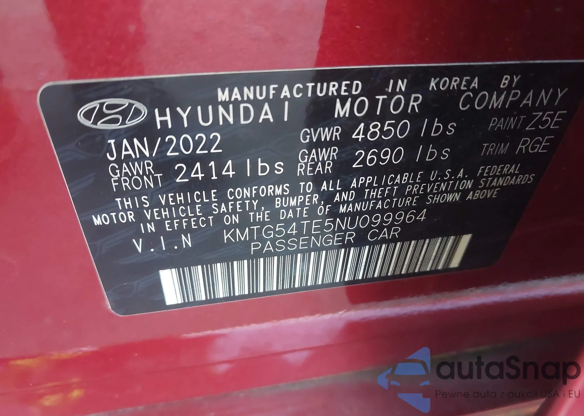 VIN: KMTG54TE5NU099964