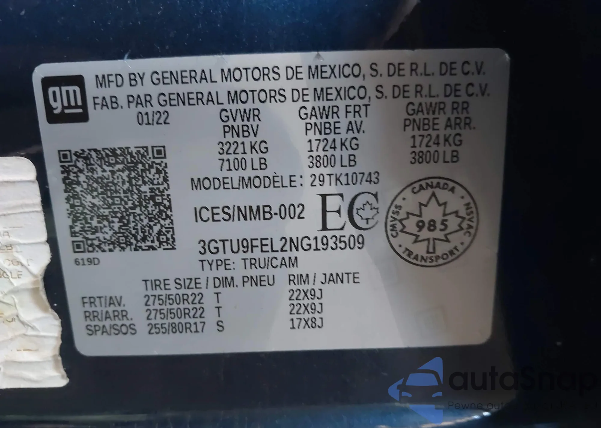 VIN: 3GTU9FEL2NG193509