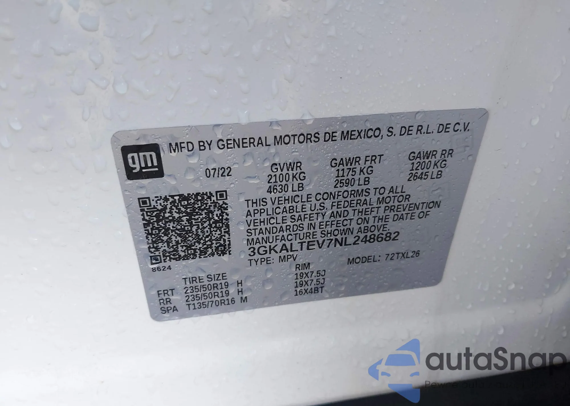 VIN: 3GKALTEV7NL248682