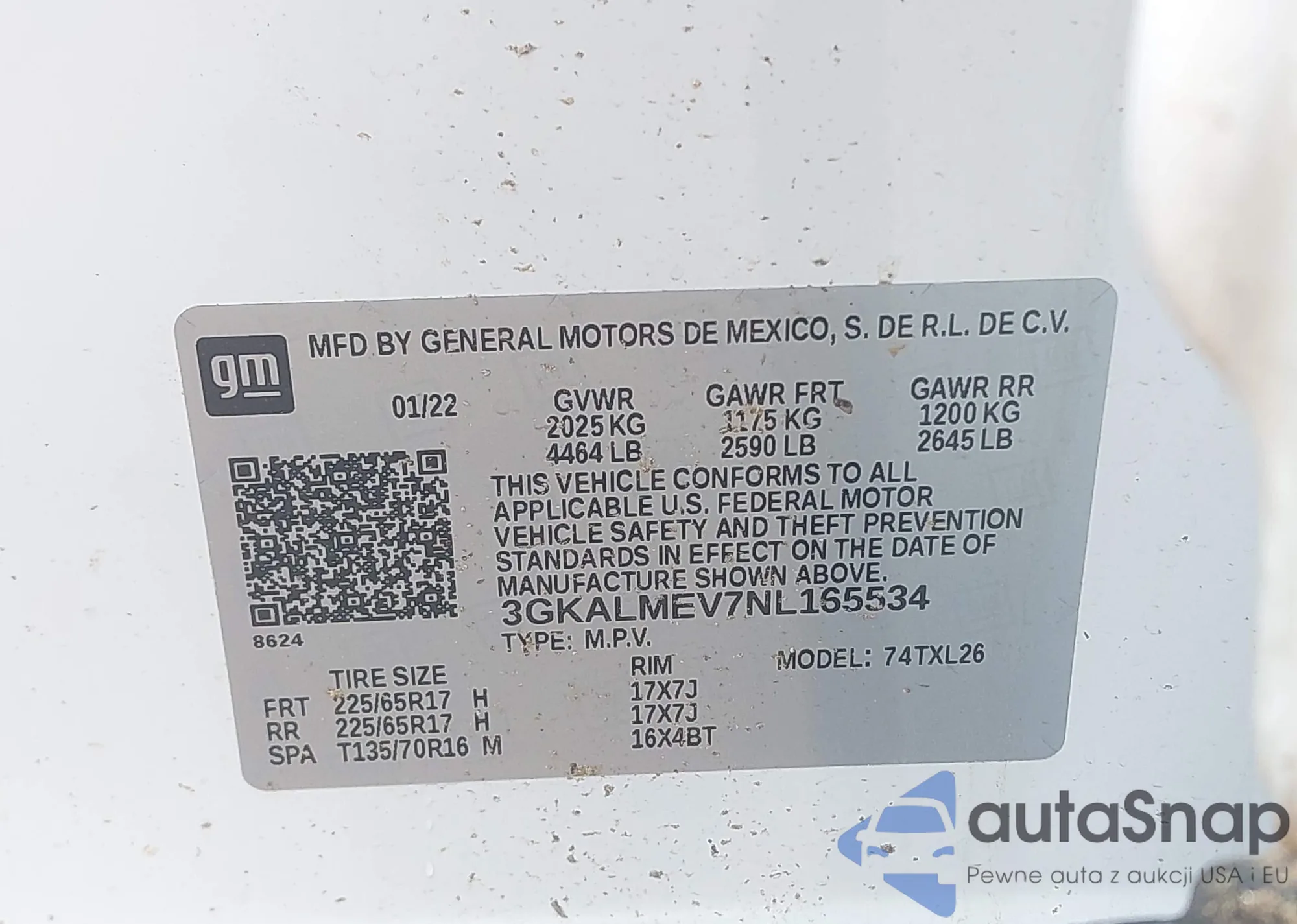 Автомобиль GMC Terrain 2022 (VIN 3GKALMEV7NL165534) ранее не участвовал в торгах. Документы чистые, пробег соответствует или ниже среднего по рынку. Продаётся страховой компанией — рекомендуем покупку. Доставка в порт займет около 6–8 недель.