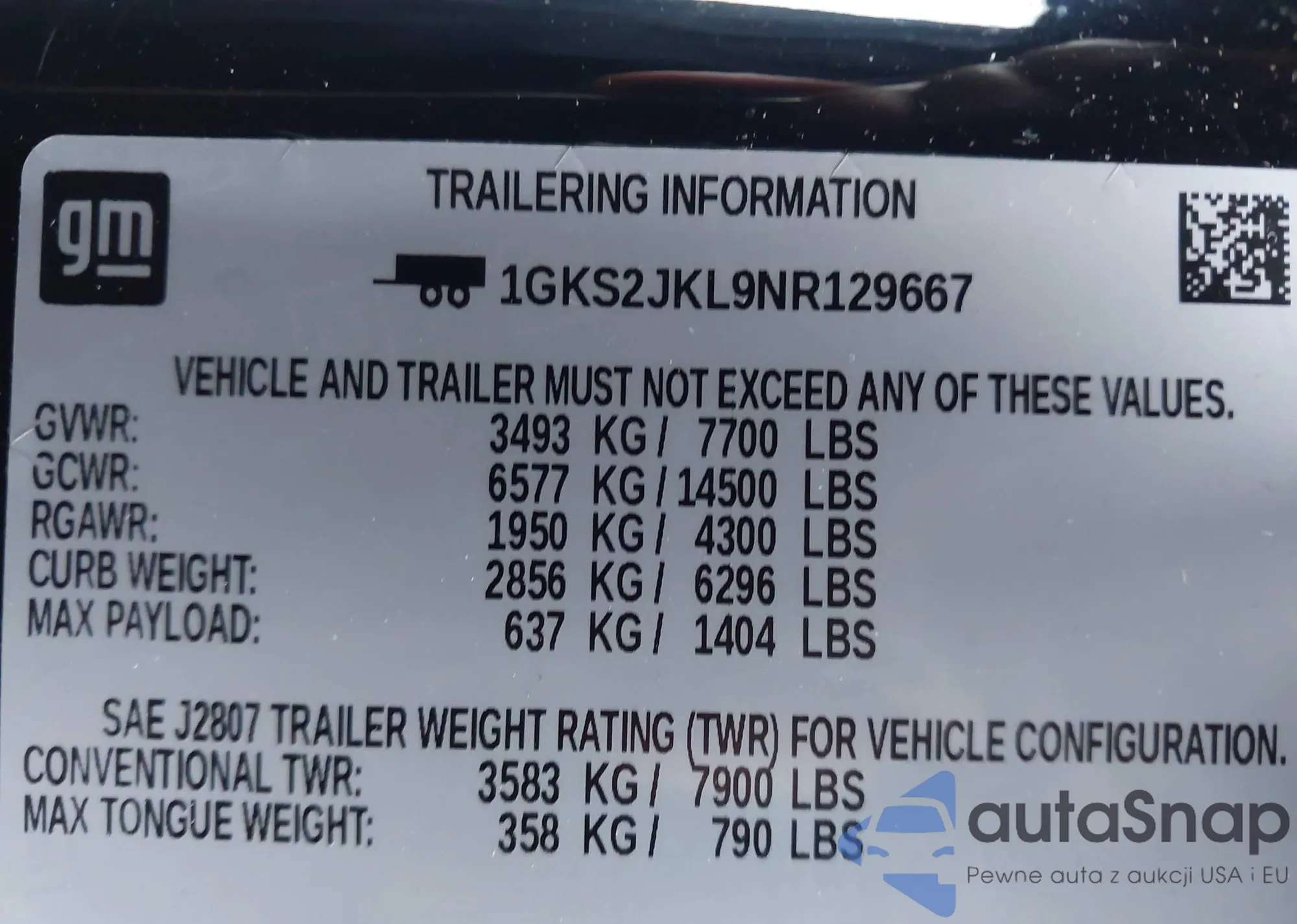 VIN: 1GKS2JKL9NR129667