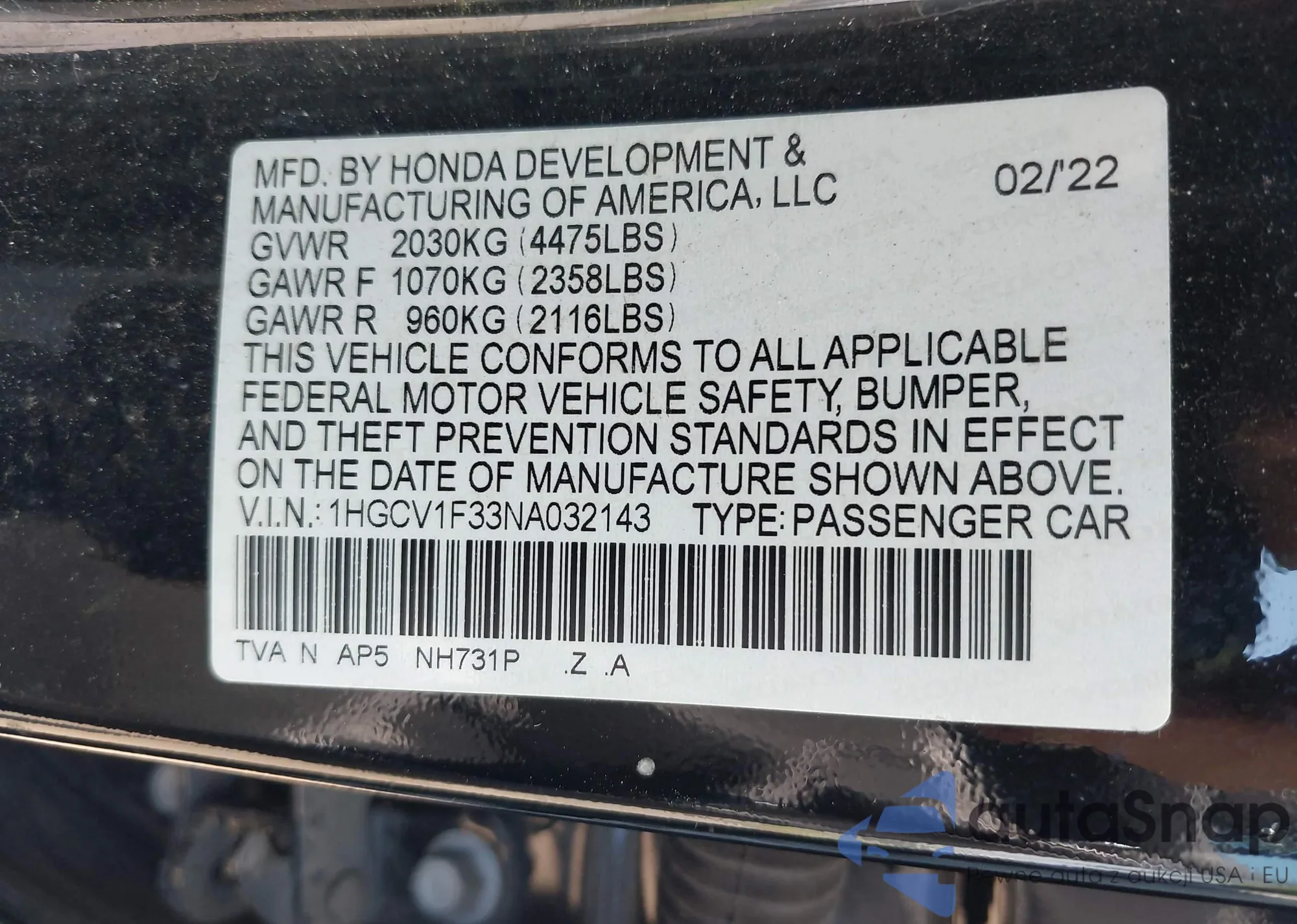 VIN: 1HGCV1F33NA032143