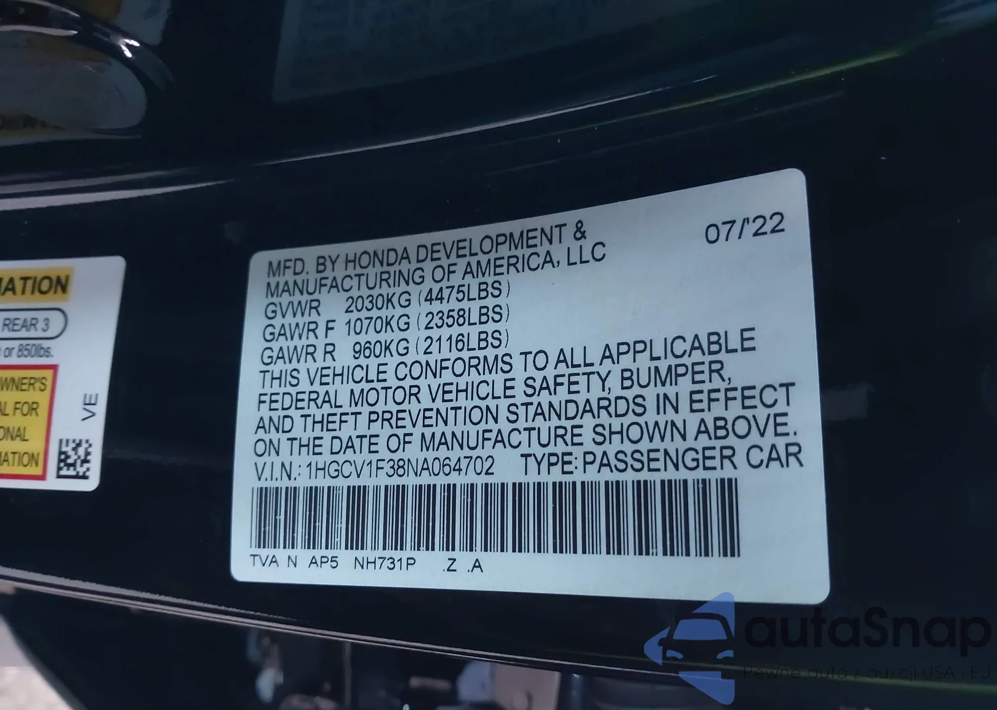 VIN: 1HGCV1F38NA064702