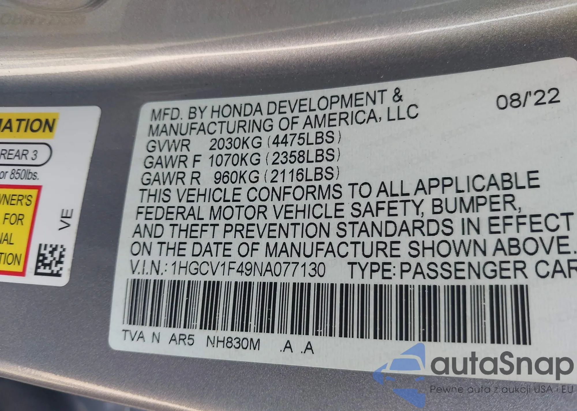 VIN: 1HGCV1F49NA077130
