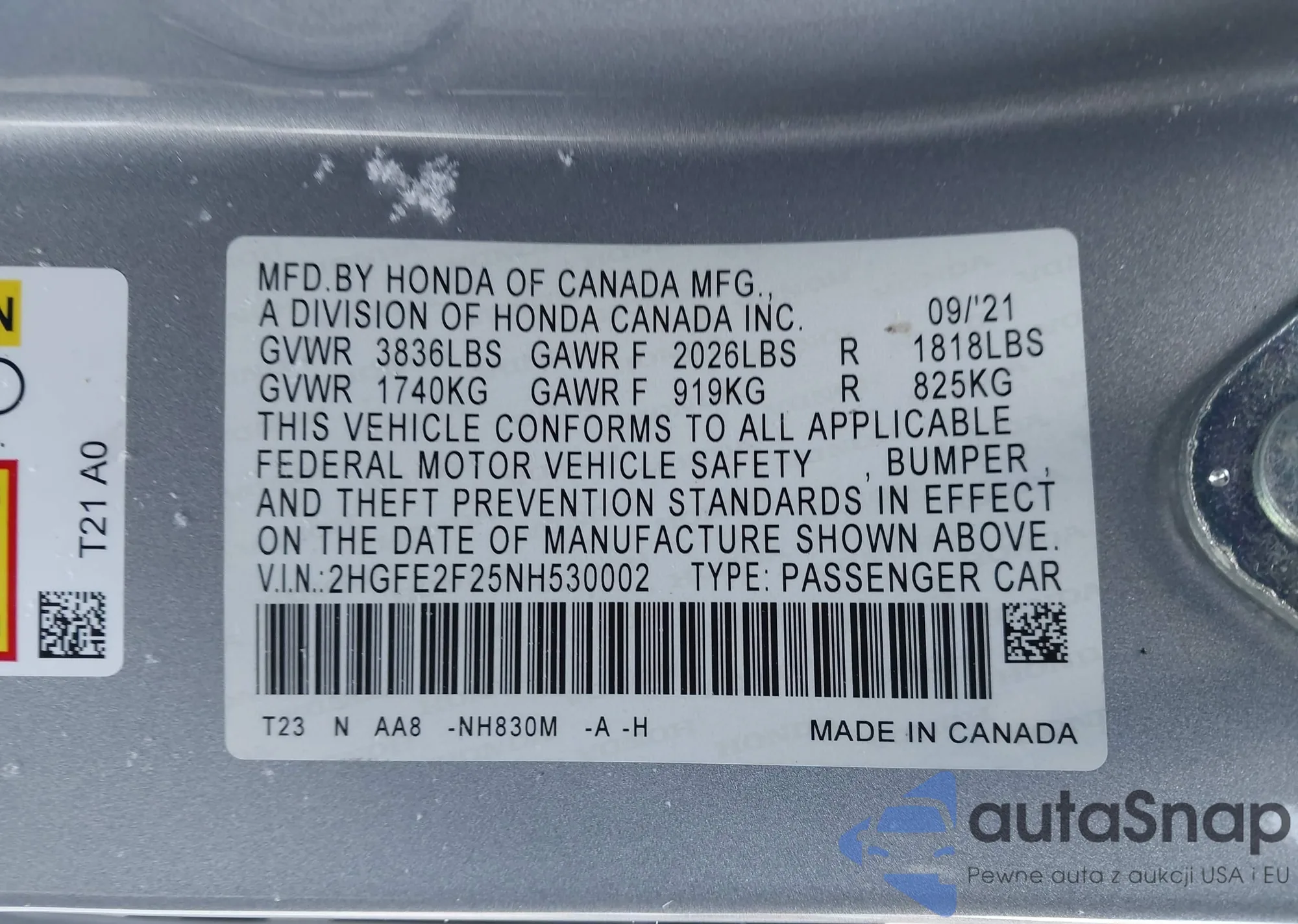 Автомобиль Honda Civic 2022 (VIN 2HGFE2F25NH530002) ранее не участвовал в торгах. Документы чистые, пробег соответствует или ниже среднего по рынку. Продаётся страховой компанией — рекомендуем покупку. Доставка в порт займет около 6–8 недель.