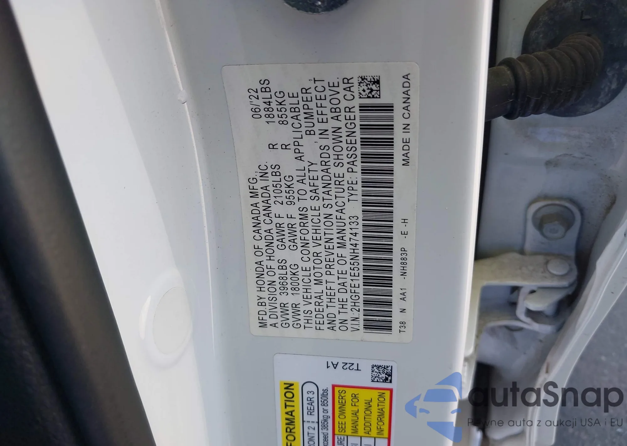 VIN: 2HGFE1E55NH474133