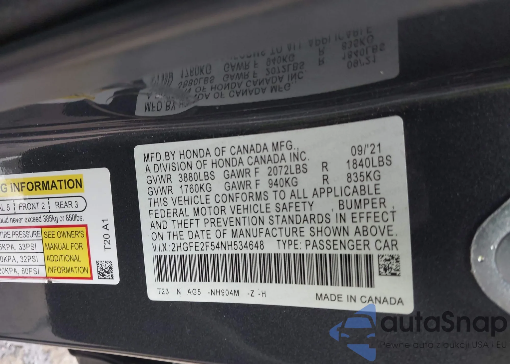 VIN: 2HGFE2F54NH534648