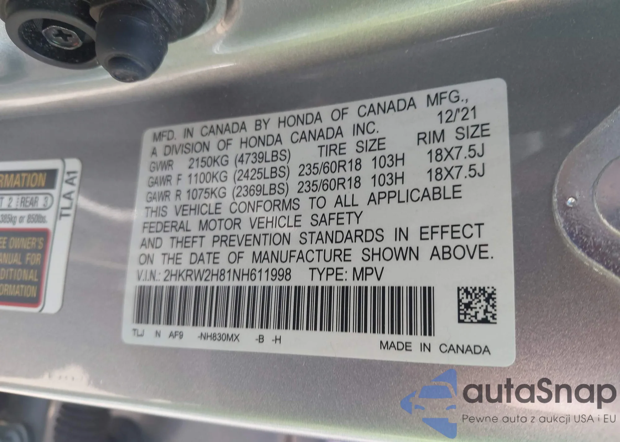 VIN: 2HKRW2H81NH611998
