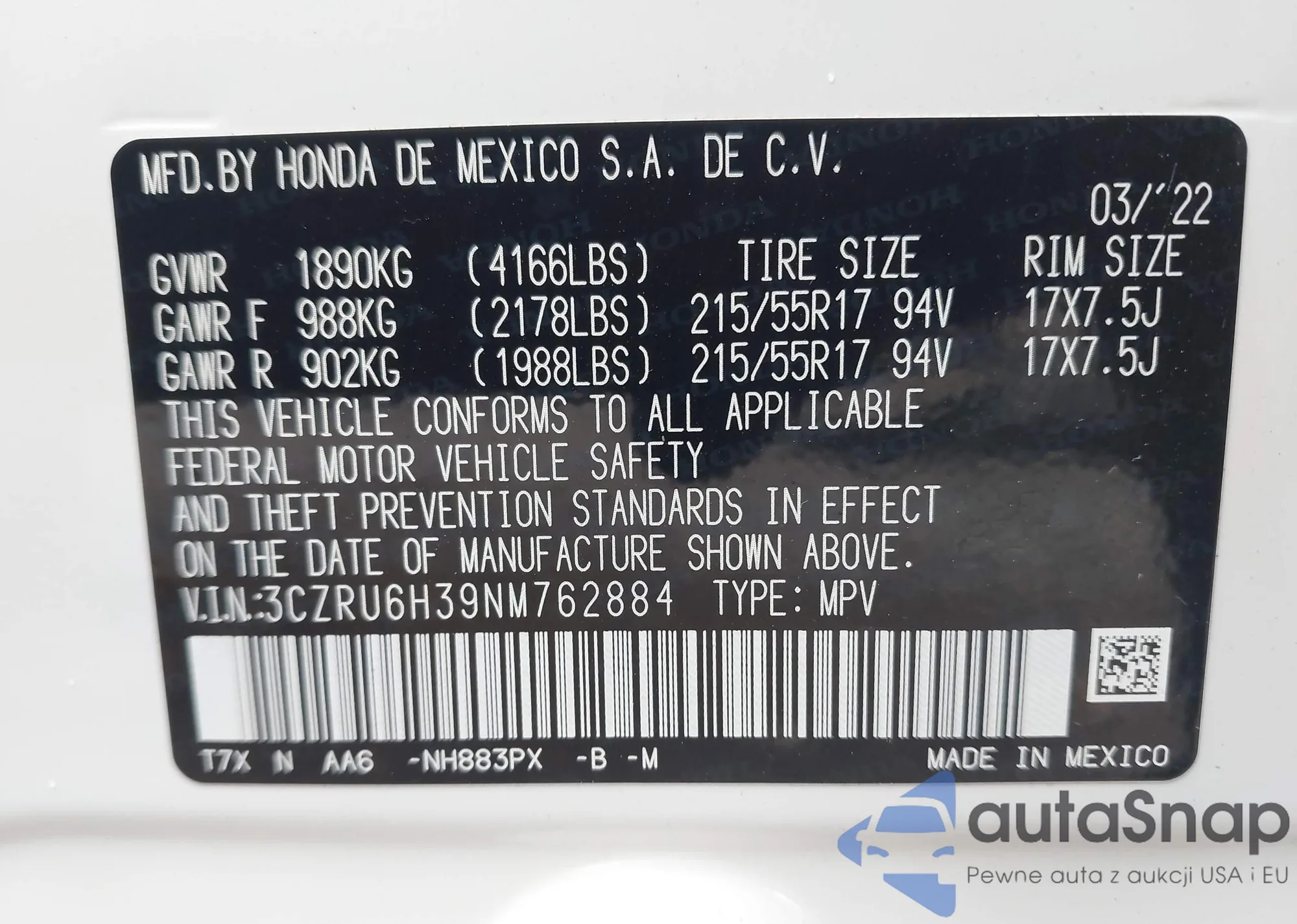 VIN: 3CZRU6H39NM762884