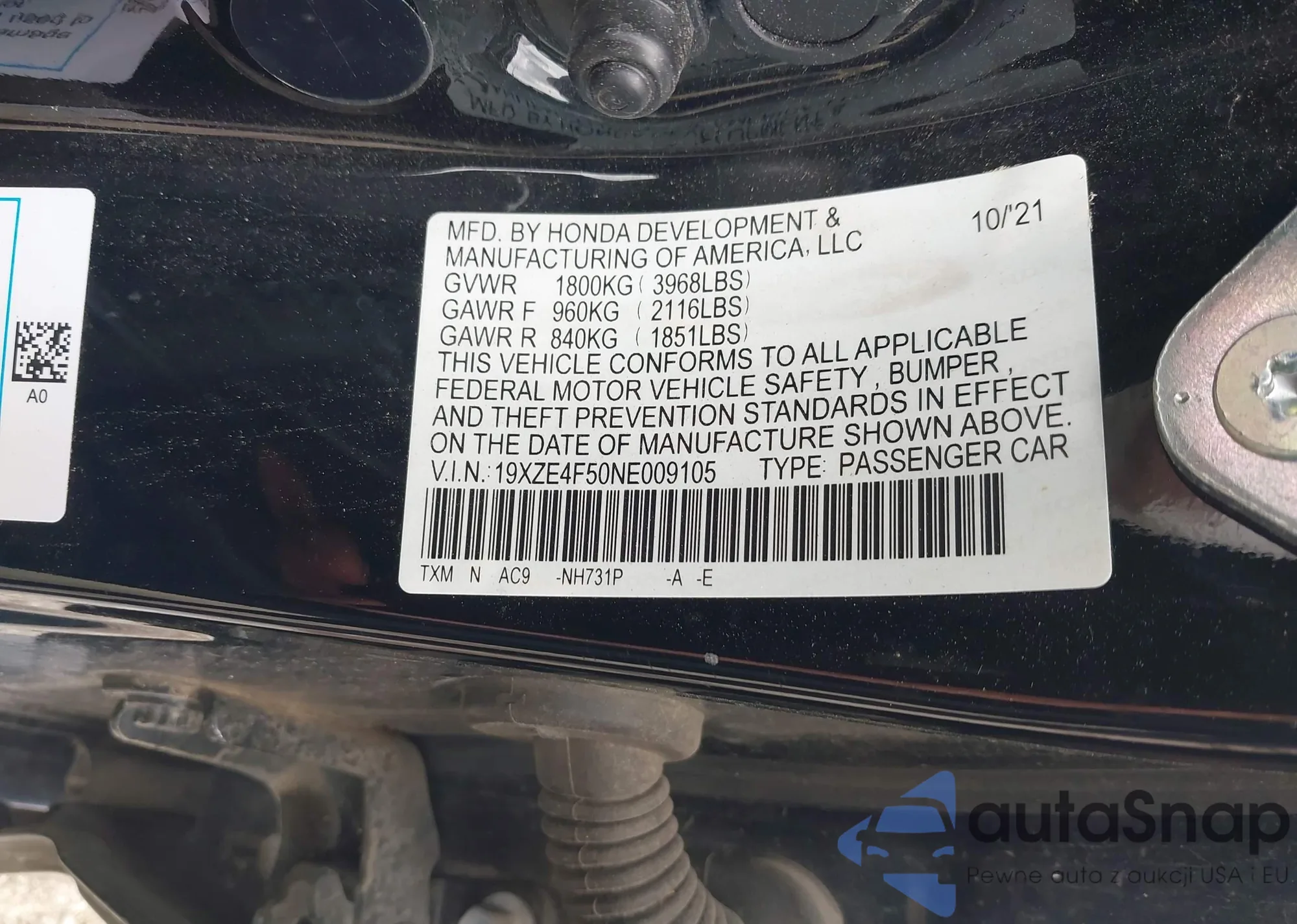 Автомобиль Honda Insight 2022 (VIN 19XZE4F50NE009105) имеет документы, препятствующие регистрации. Могут возникнуть сложности при экспорте и регистрации. Обратитесь к экспертам AutaSnap для поиска альтернатив.