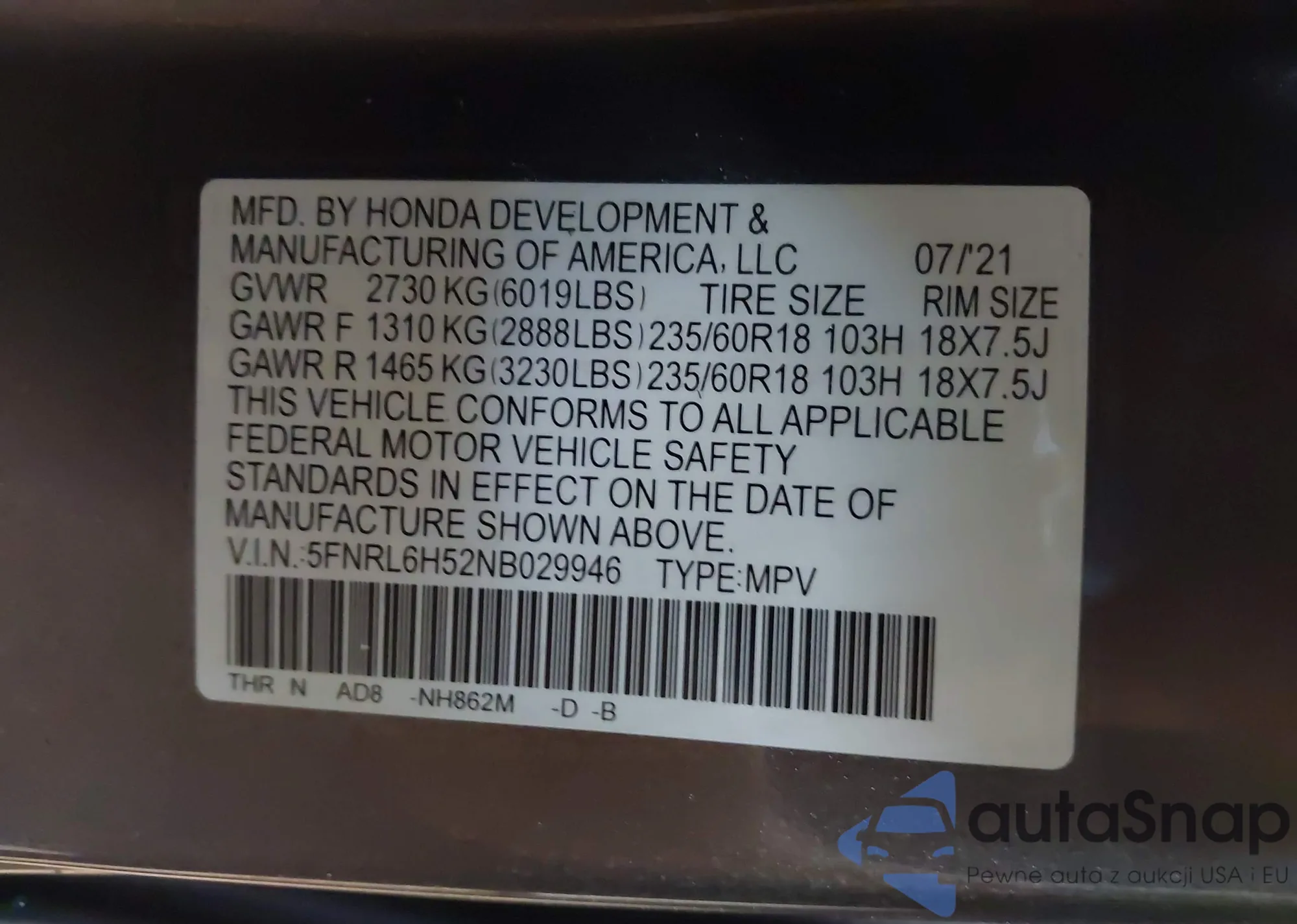 VIN: 5FNRL6H52NB029946