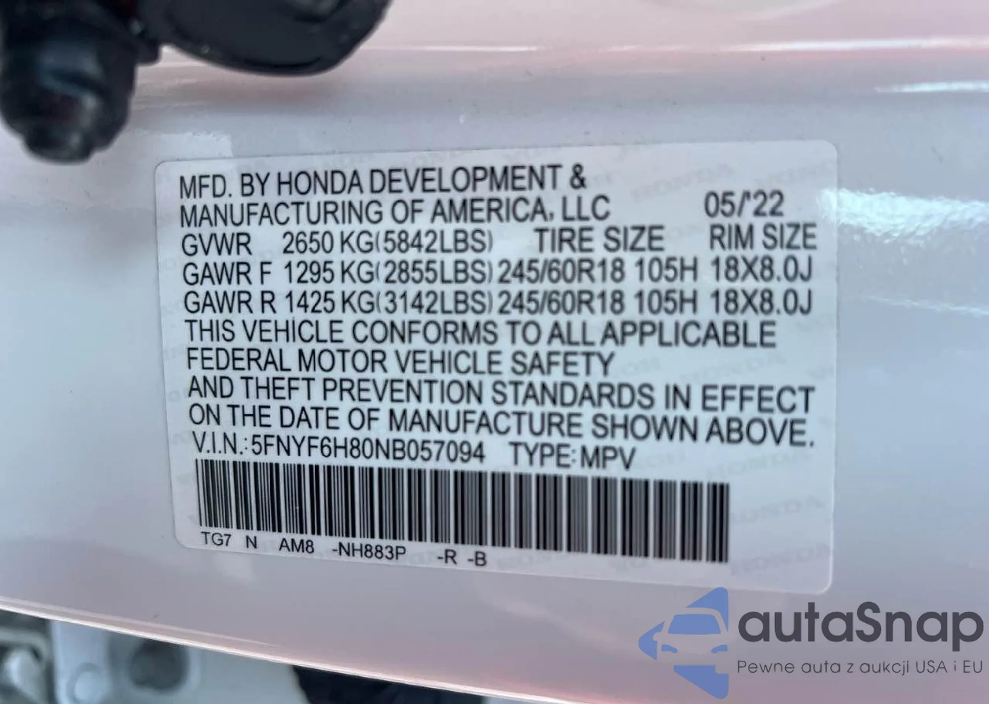 VIN: 5FNYF6H80NB057094
