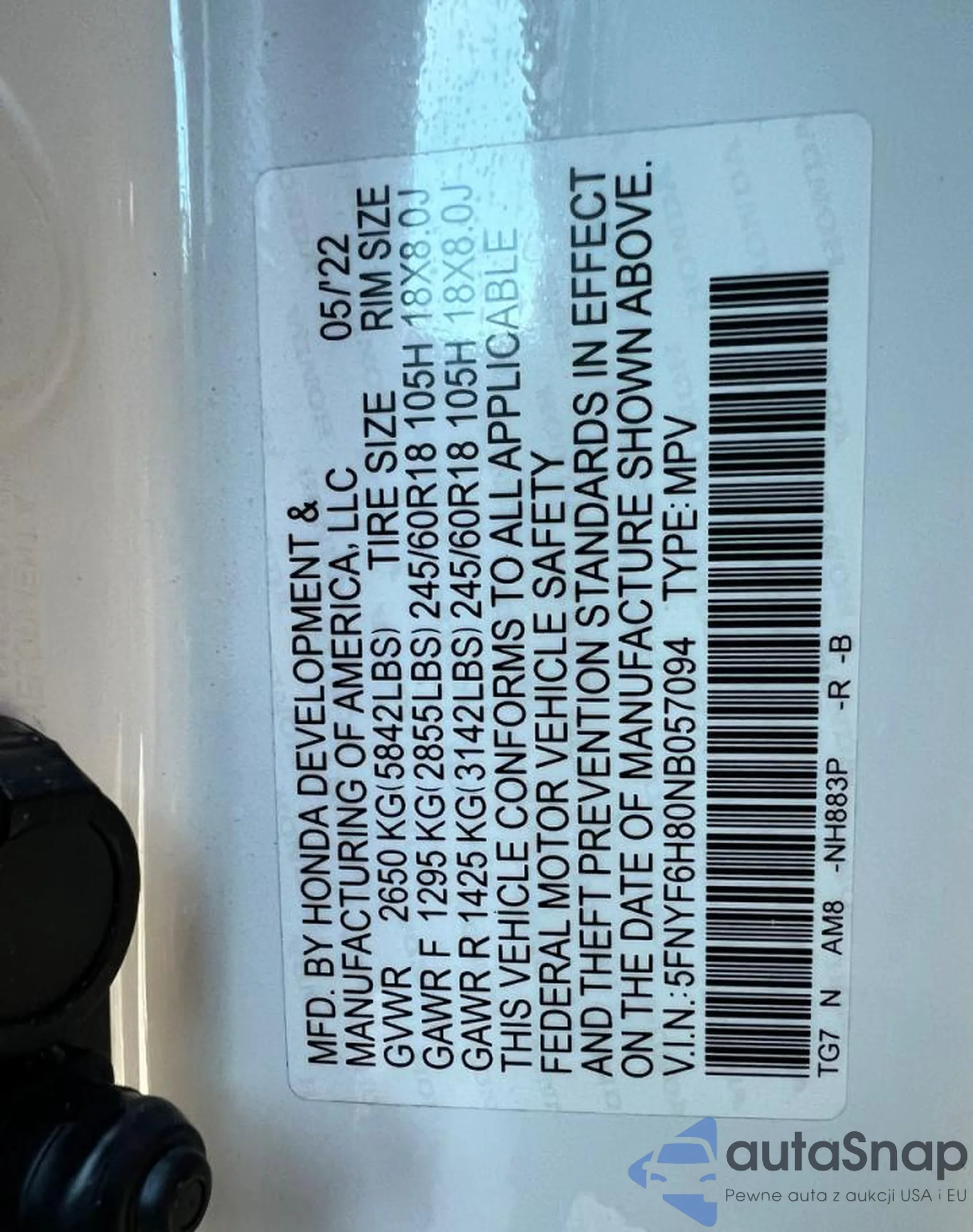 VIN: 5FNYF6H80NB057094