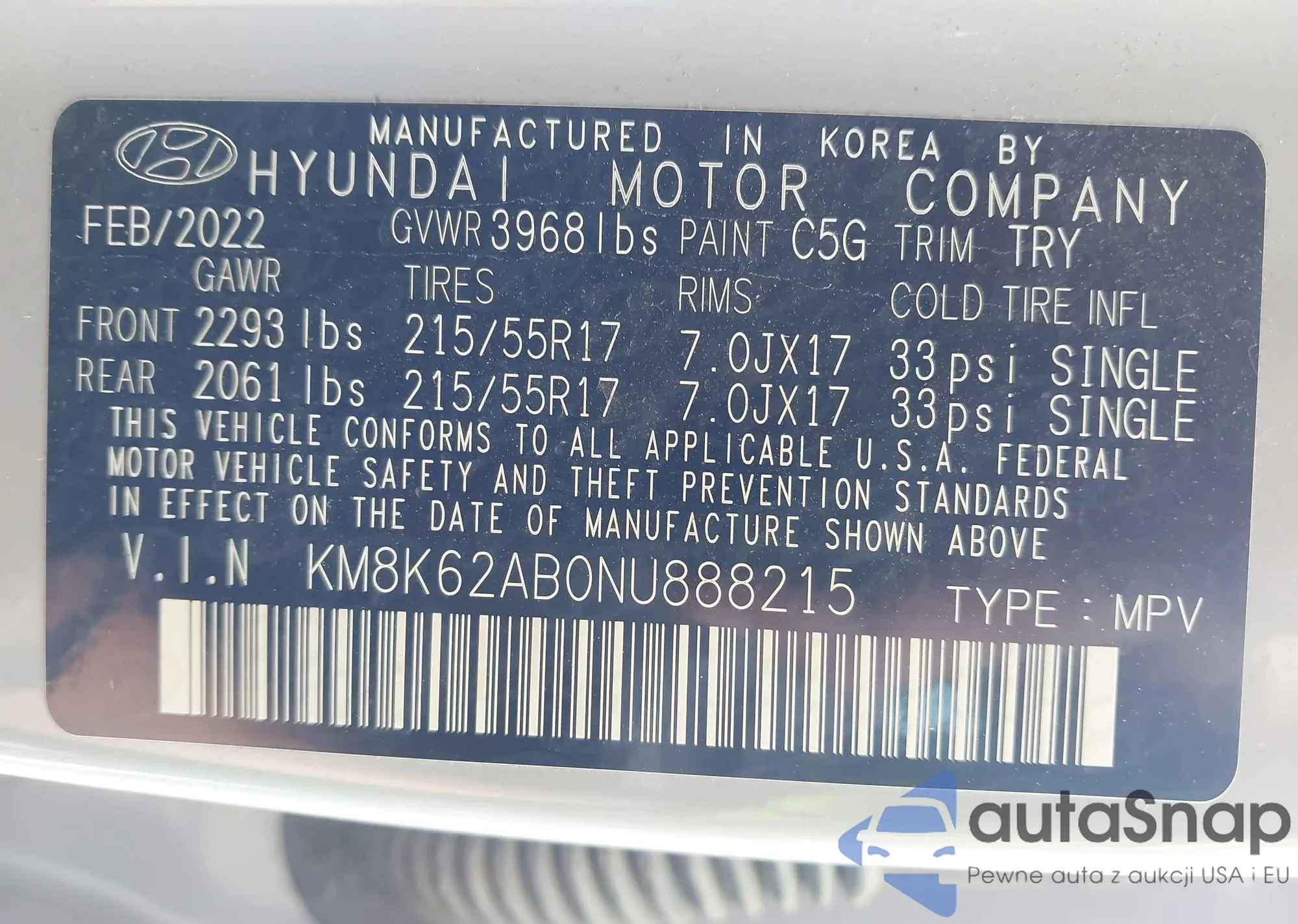 VIN: KM8K62AB0NU888215