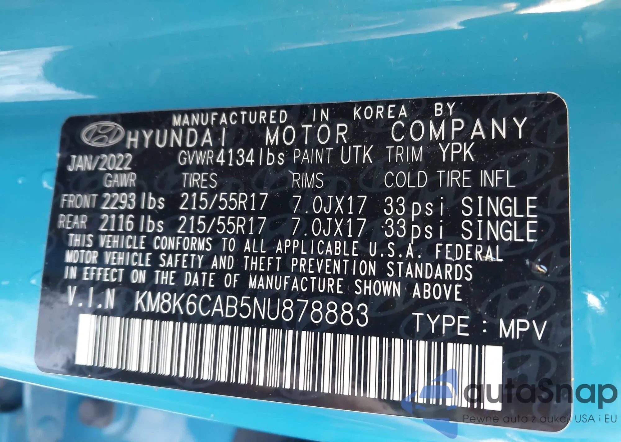 • VIN: KM8K6CAB5NU878883
