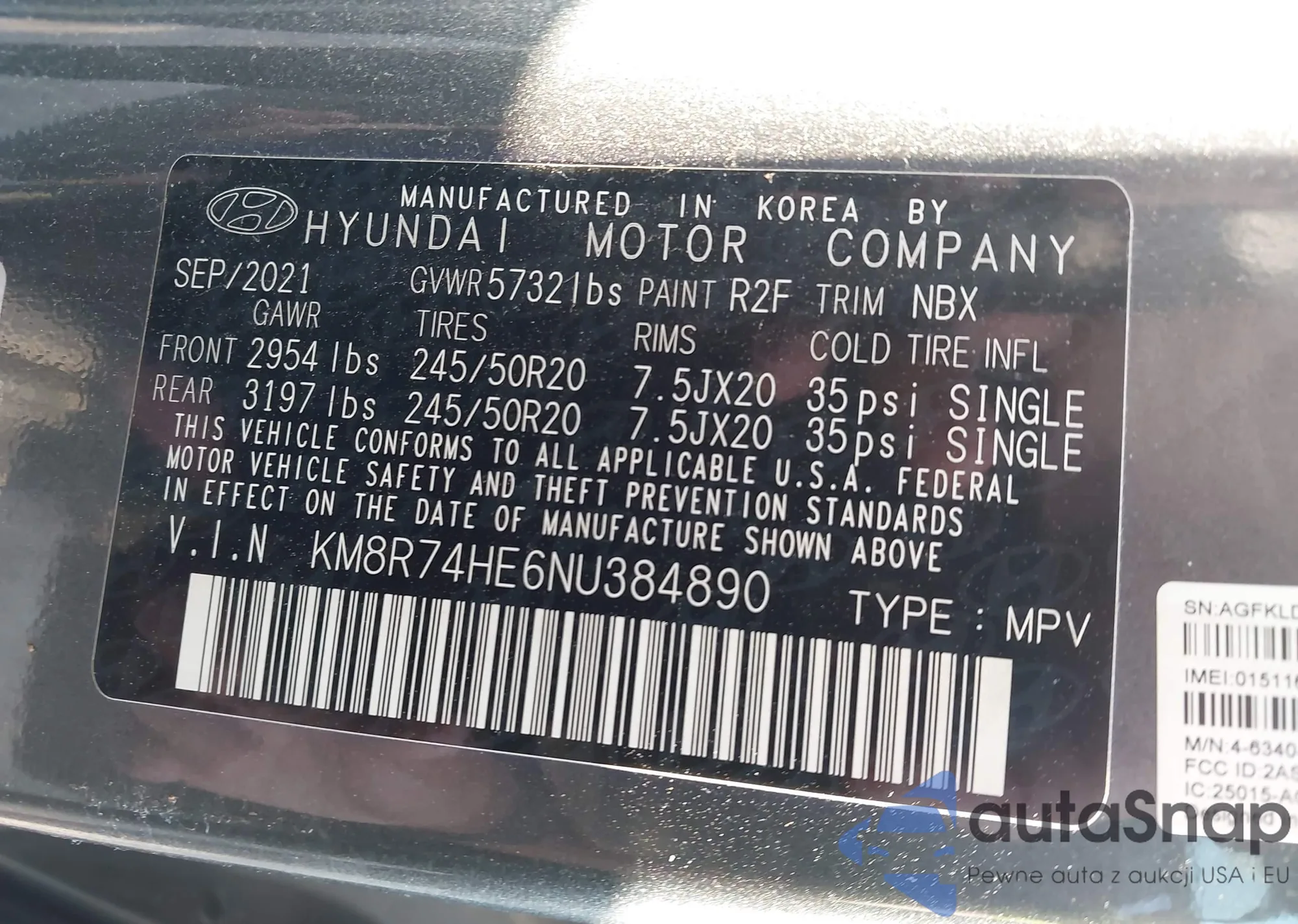 VIN: KM8R74HE6NU384890