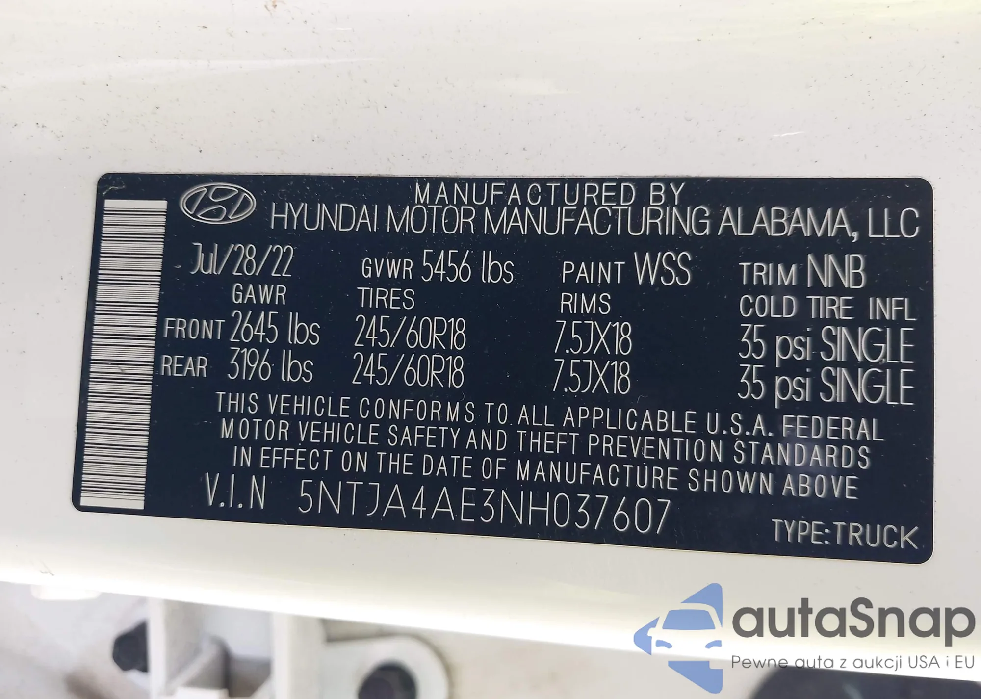 VIN: 5NTJA4AE3NH037607