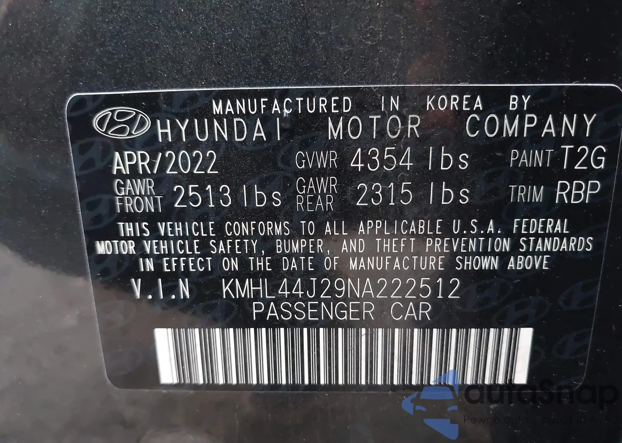 VIN: KMHL44J29NA222512