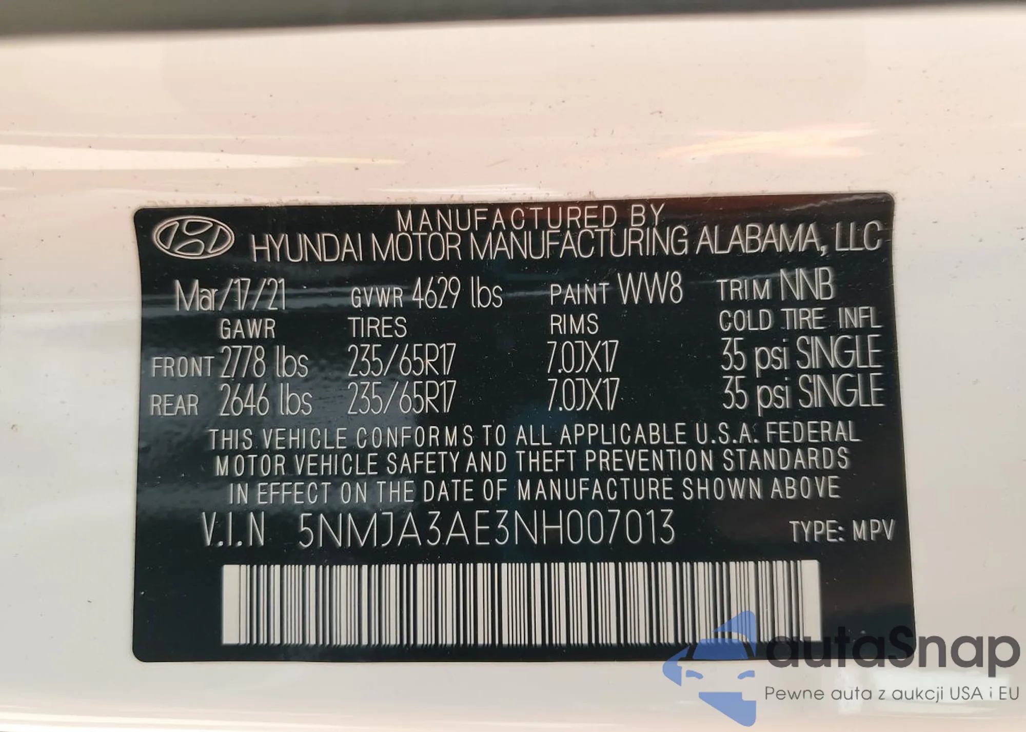 VIN: 5NMJA3AE3NH007013