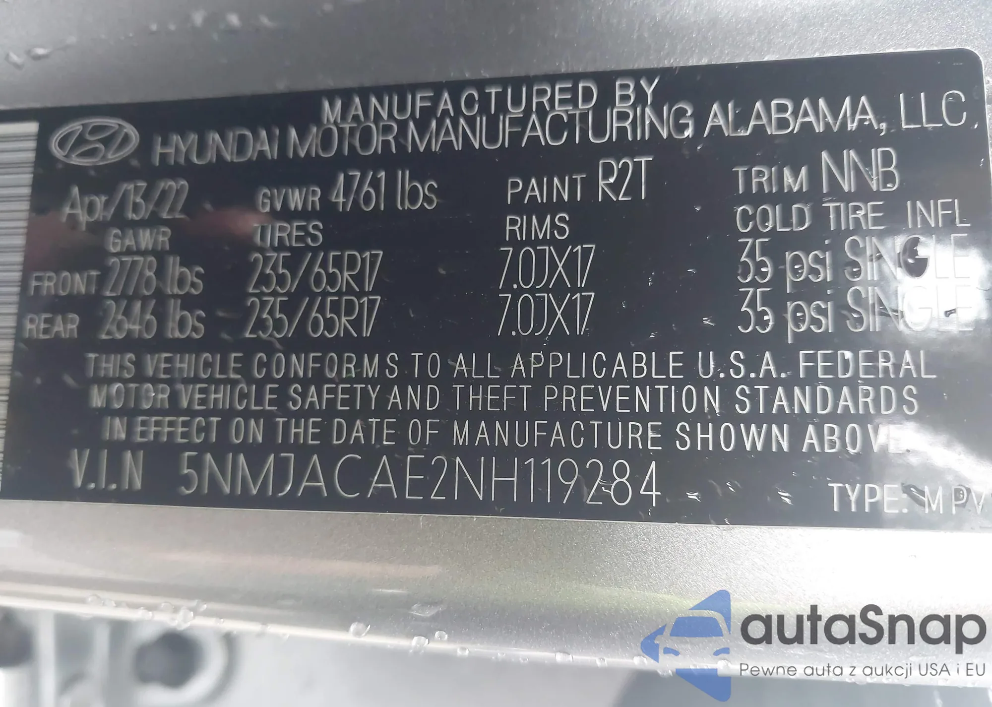 VIN: 5NMJACAE2NH119284