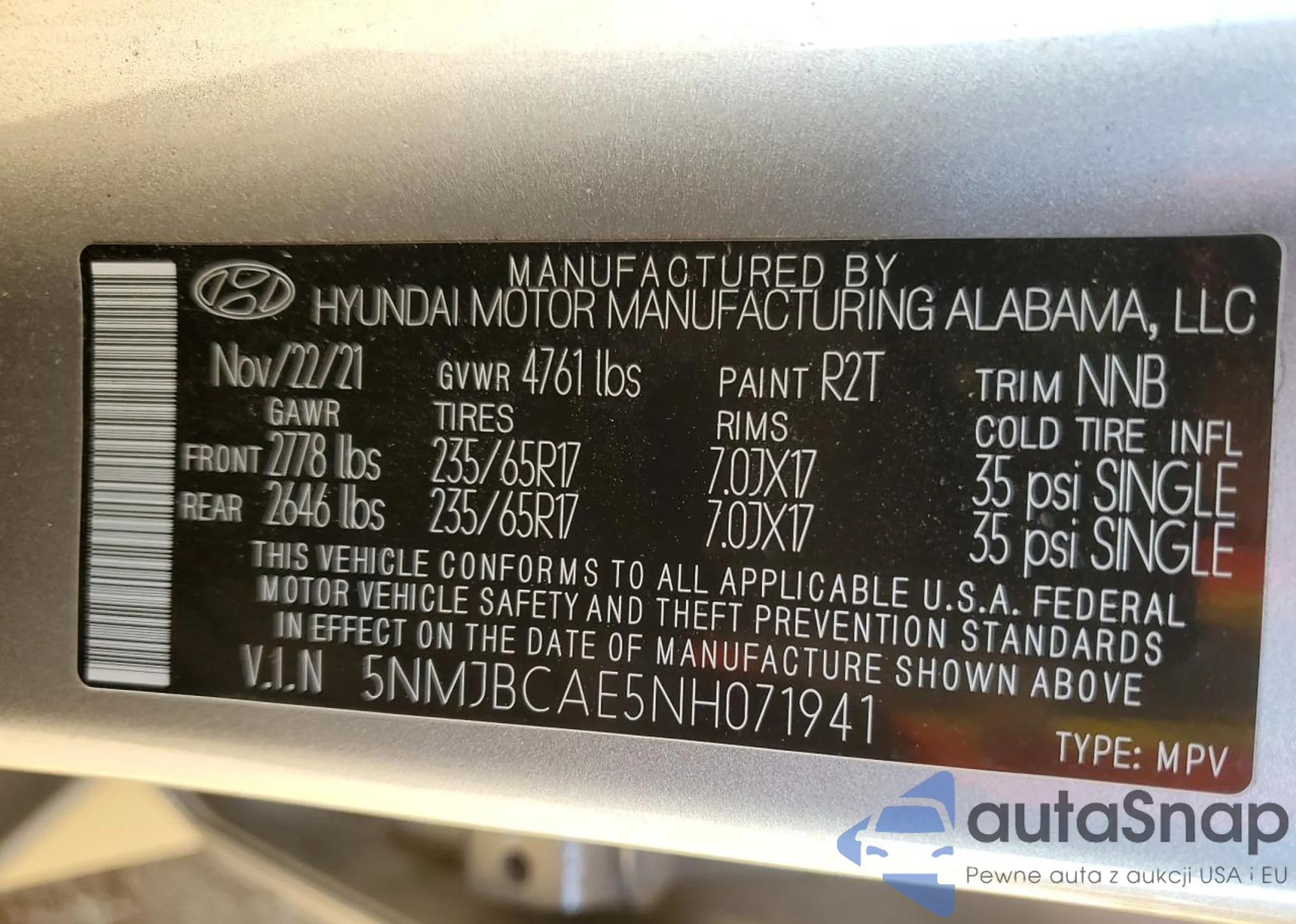 VIN: 5NMJBCAE5NH071941