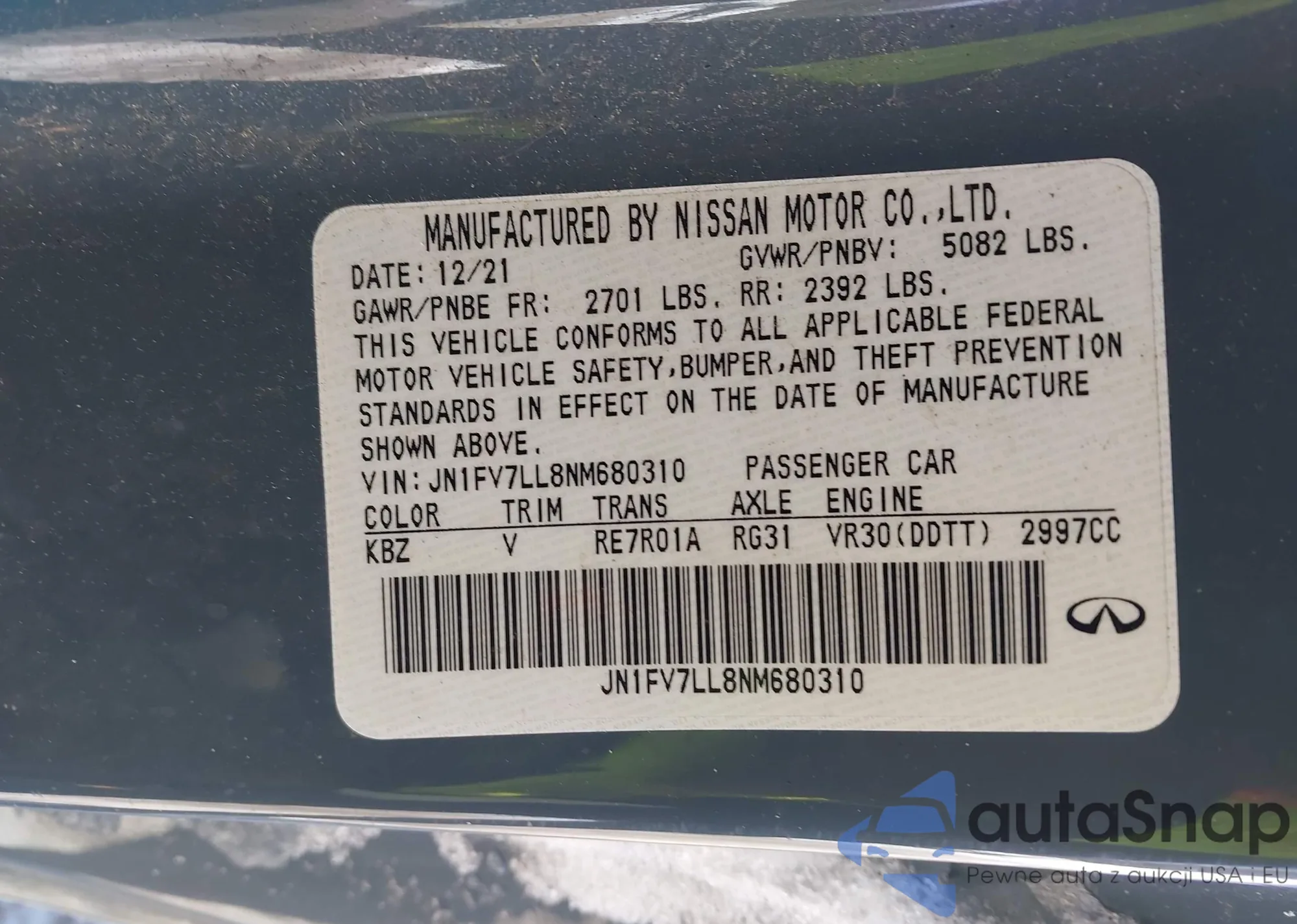 • VIN: JN1FV7LL8NM680310