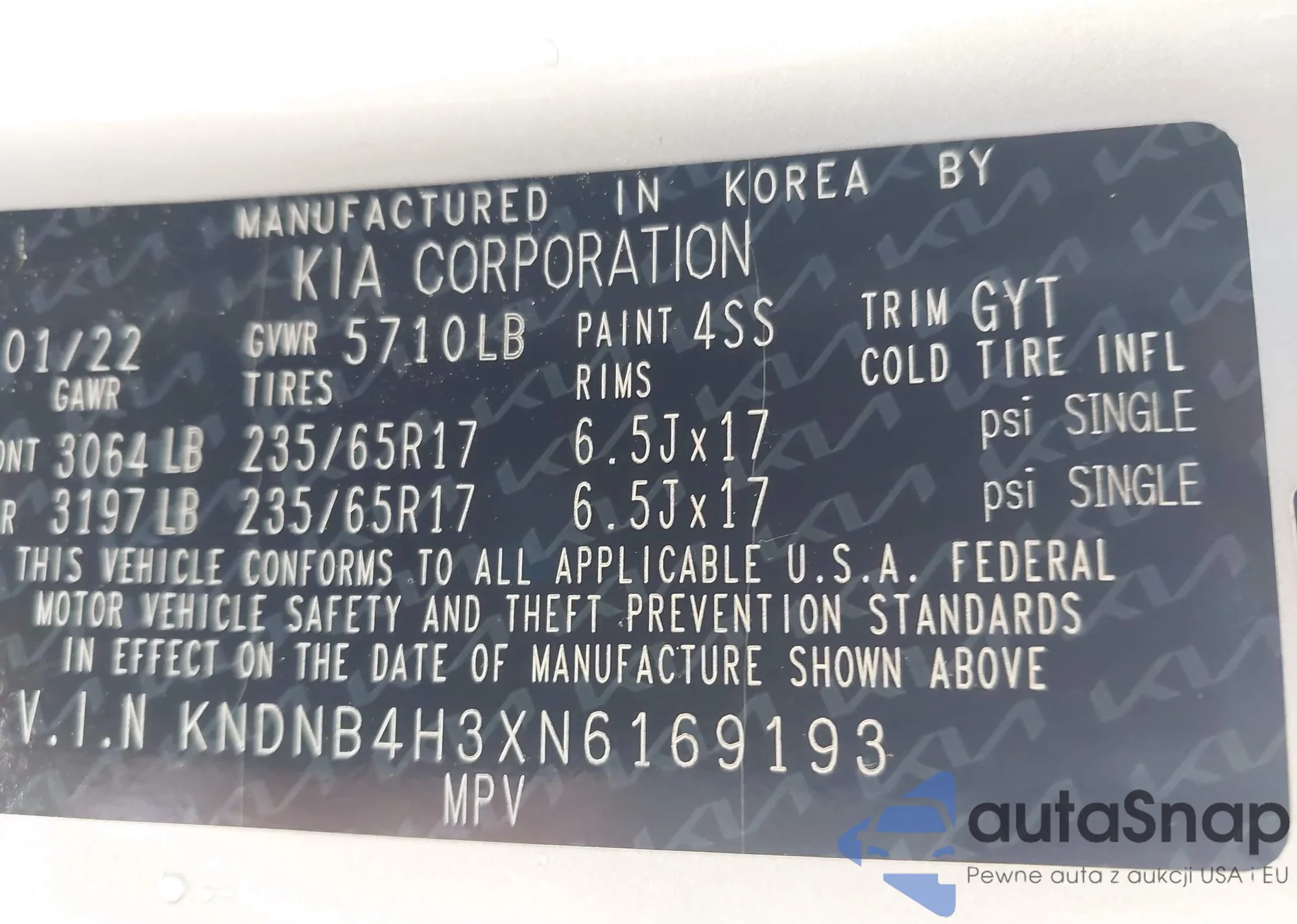 Автомобиль Kia Carnival 2022 (VIN KNDNB4H3XN6169193) ранее не участвовал в торгах. Документы чистые, пробег соответствует или ниже среднего по рынку. Продаётся страховой компанией — рекомендуем покупку. Доставка в порт займет около 6–8 недель.