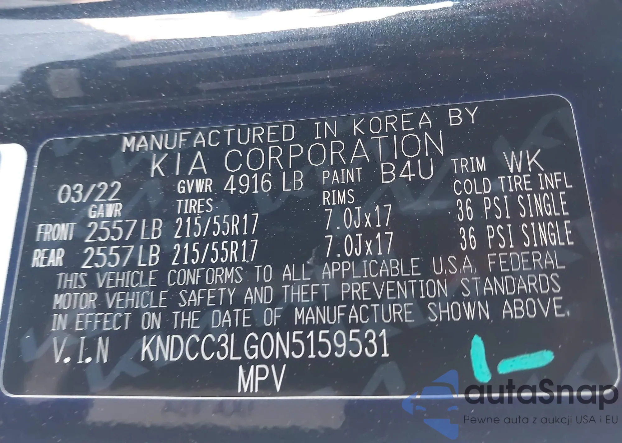 VIN: KNDCC3LG0N5159531