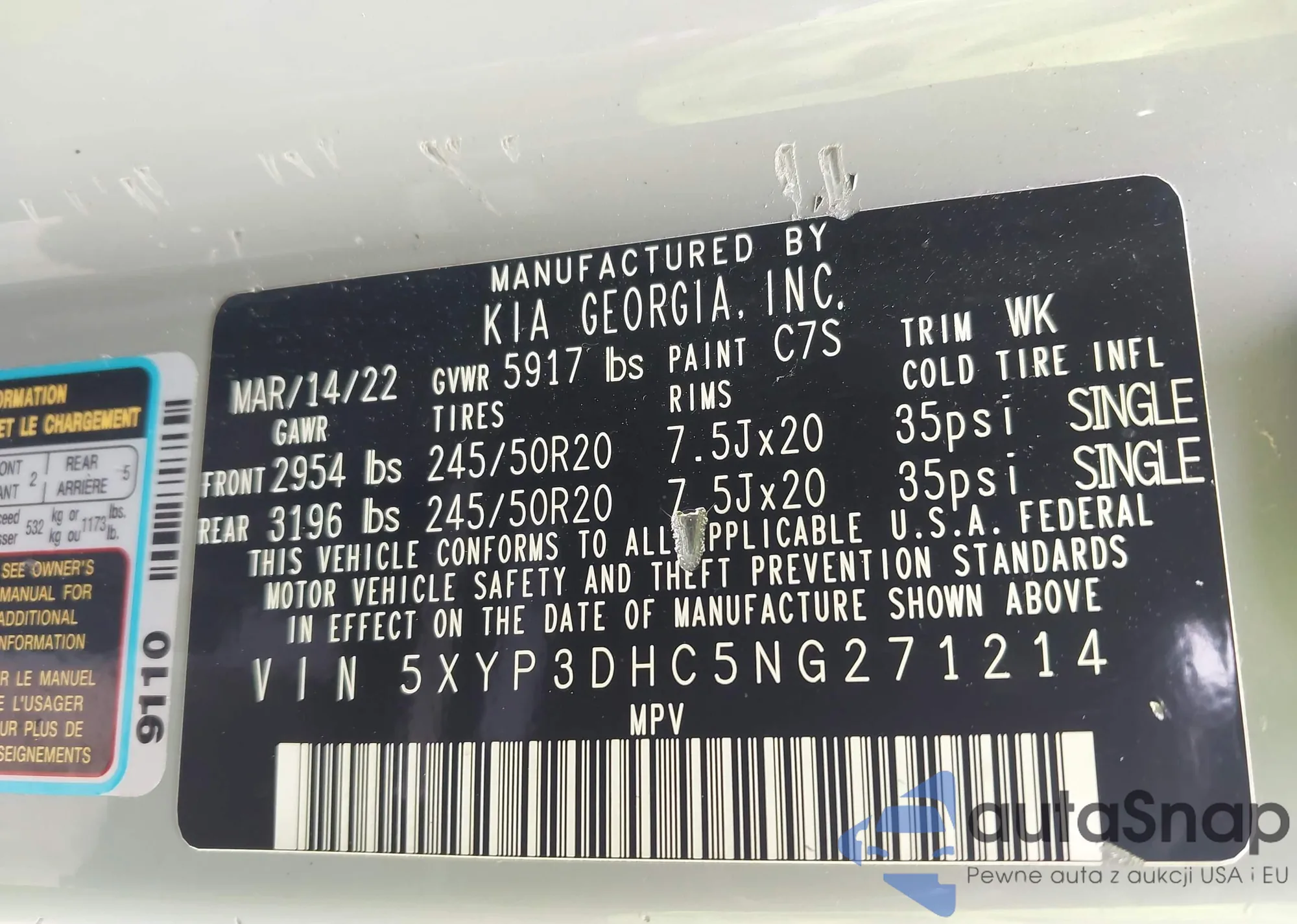 VIN: 5XYP3DHC5NG271214