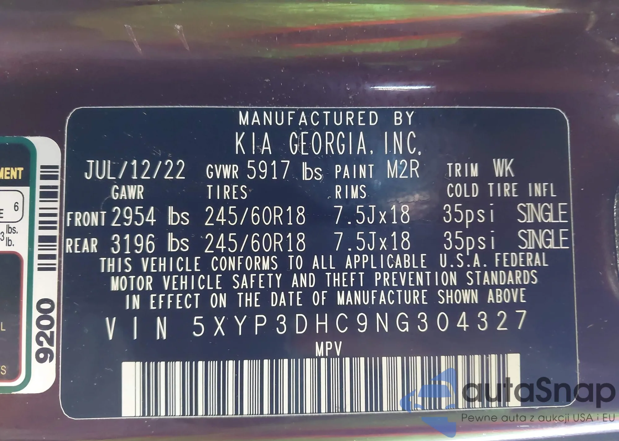 VIN: 5XYP3DHC9NG304327