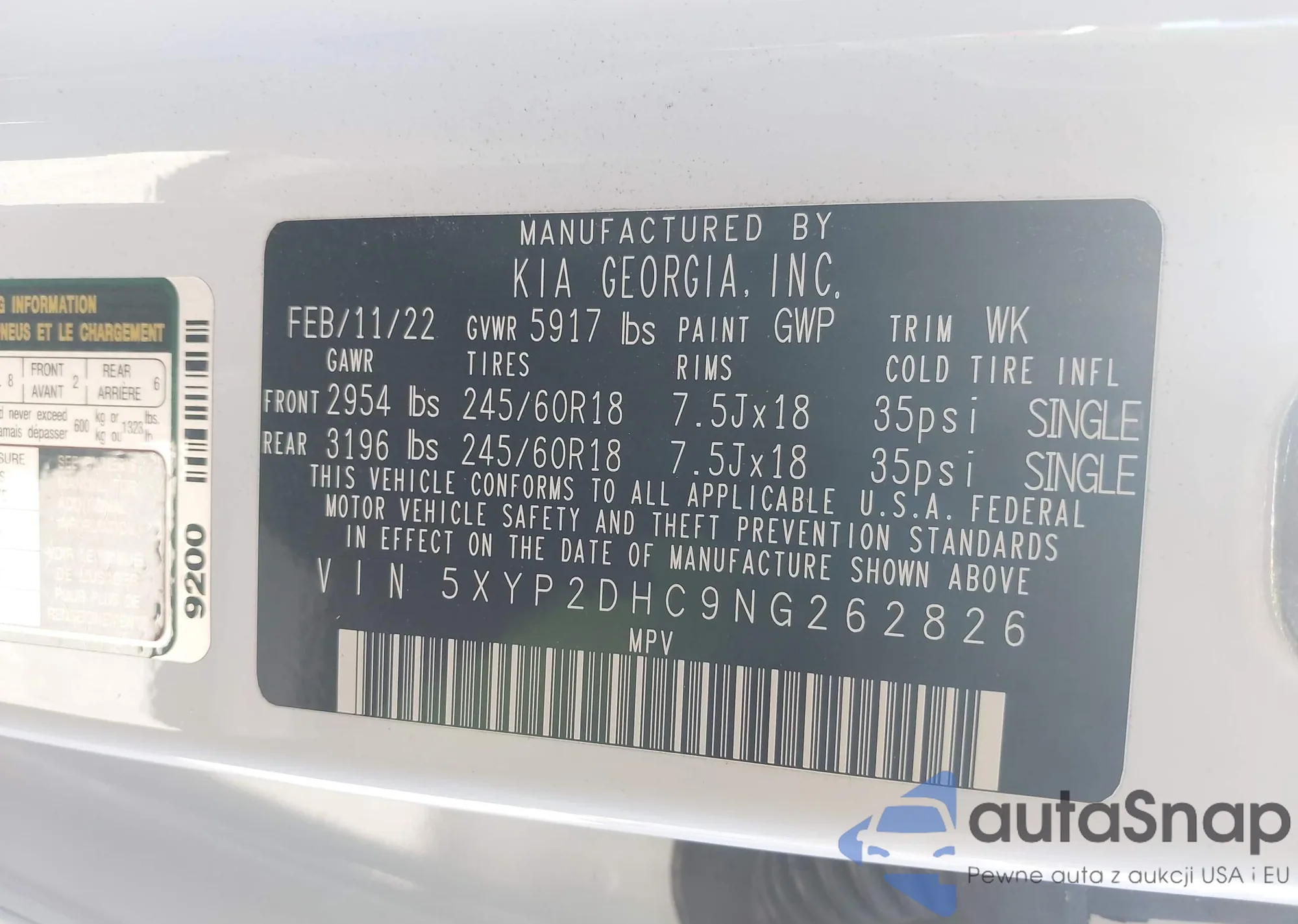 • VIN: 5XYP2DHC9NG262826