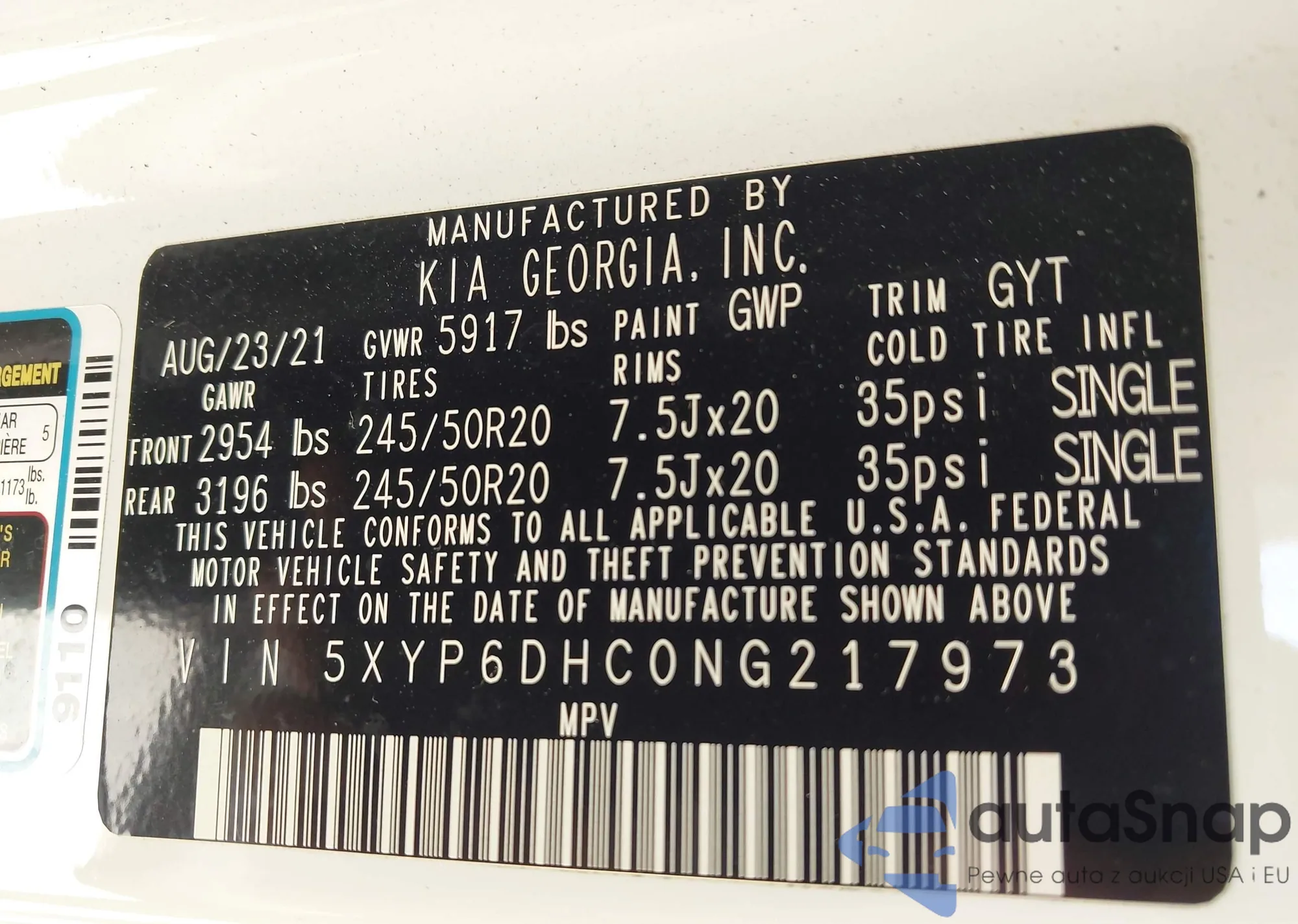 VIN: 5XYP6DHC0NG217973