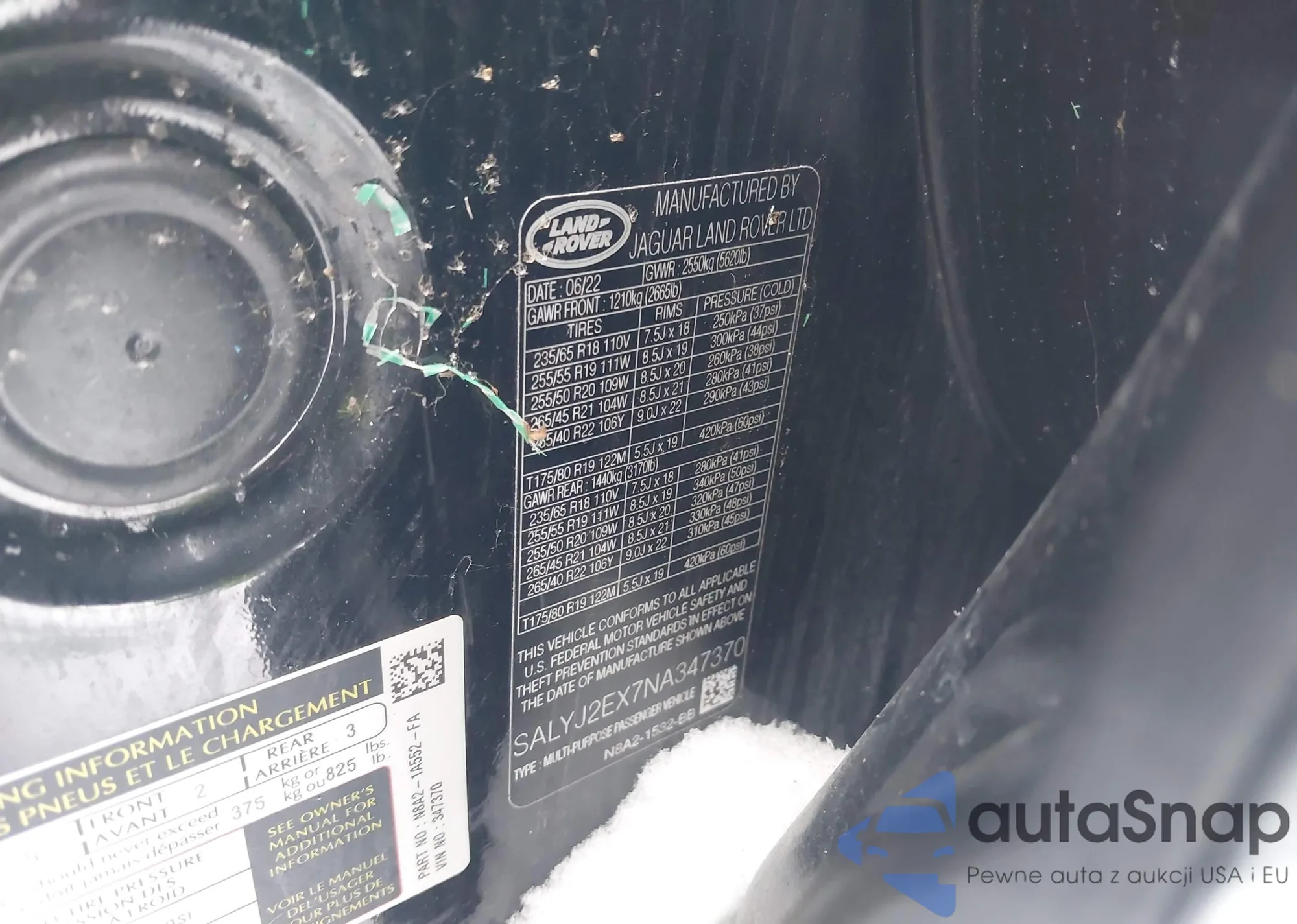 Автомобиль Land Rover Range Rover Velar 2022 (VIN SALYJ2EX7NA347370) ранее не участвовал в торгах. Документы чистые, пробег соответствует или ниже среднего по рынку. Продаётся страховой компанией — рекомендуем покупку. Доставка в порт займет около 6–8 недель.