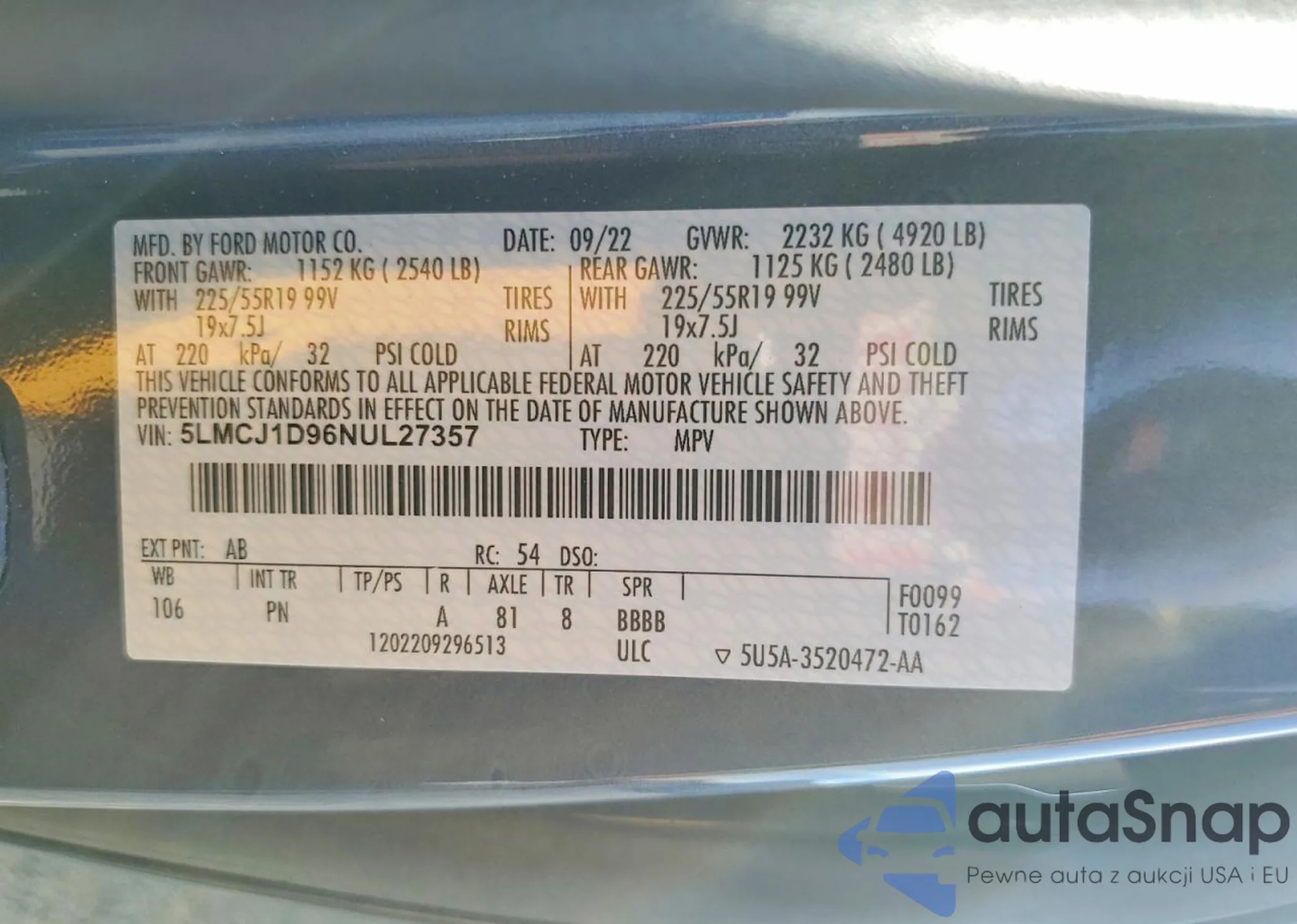 VIN: 5LMCJ1D96NUL27357