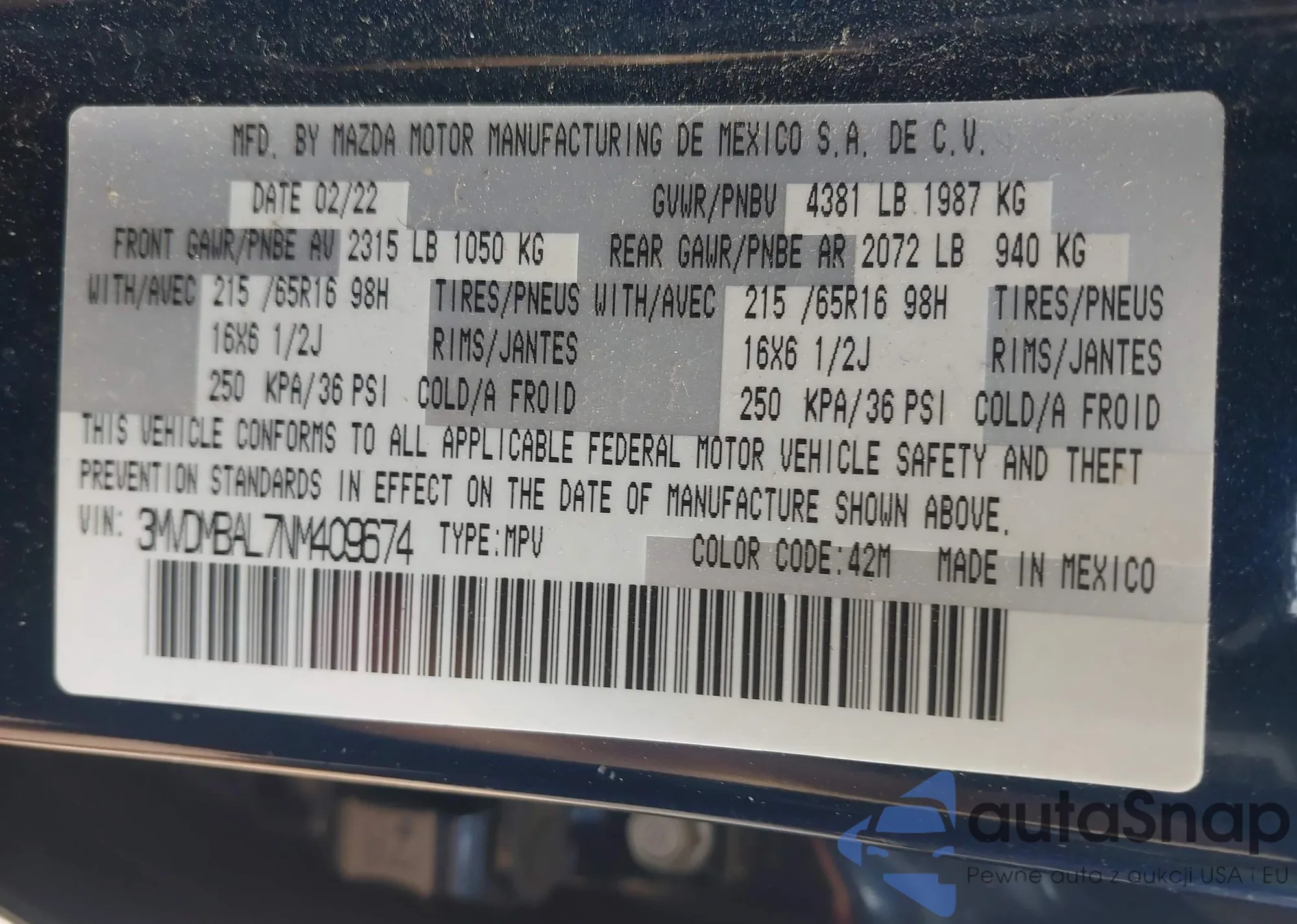 VIN: 3MVDMBAL7NM409674
