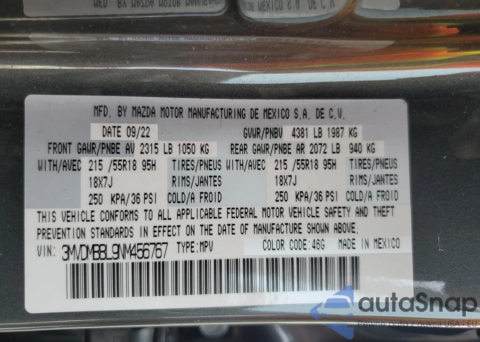VIN: 3MVDMBBL9NM456767