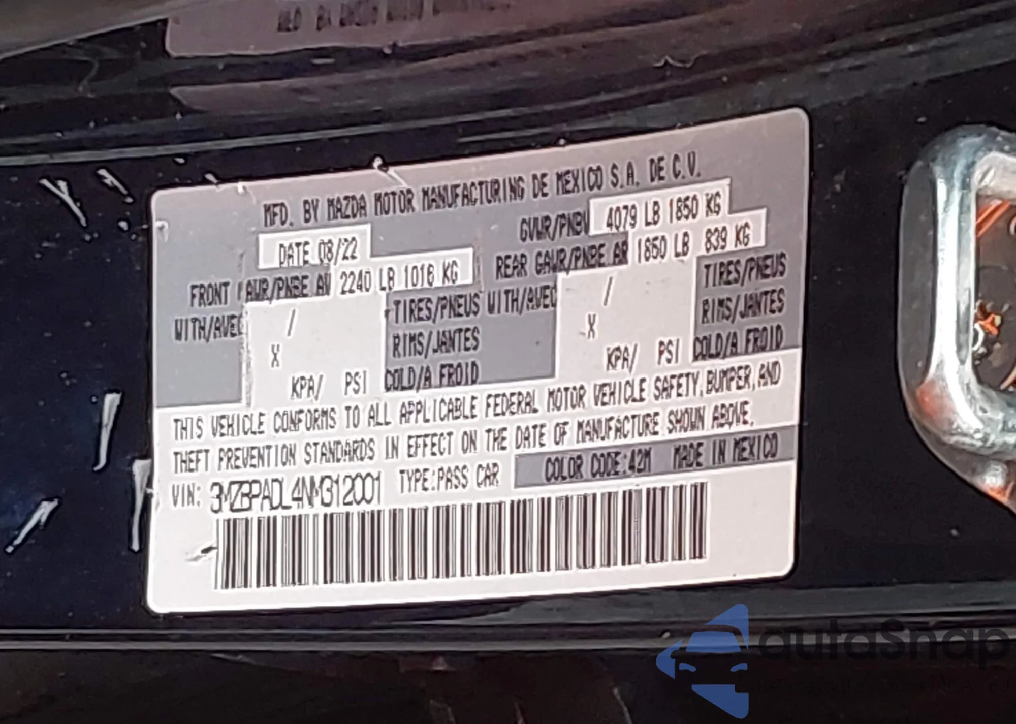 Автомобиль Mazda 3 2022 (VIN 3MZBPADL4NM312001) ранее не участвовал в торгах. Документы чистые, пробег соответствует или ниже среднего по рынку. Продаётся страховой компанией — рекомендуем покупку. Доставка в порт займет около 6–8 недель.