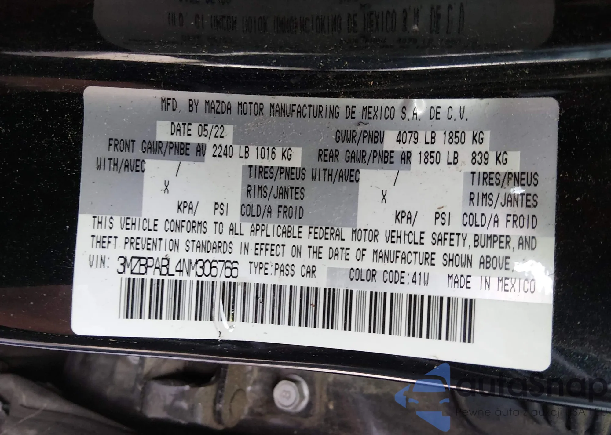 • VIN: 3MZBPABL4NM306766