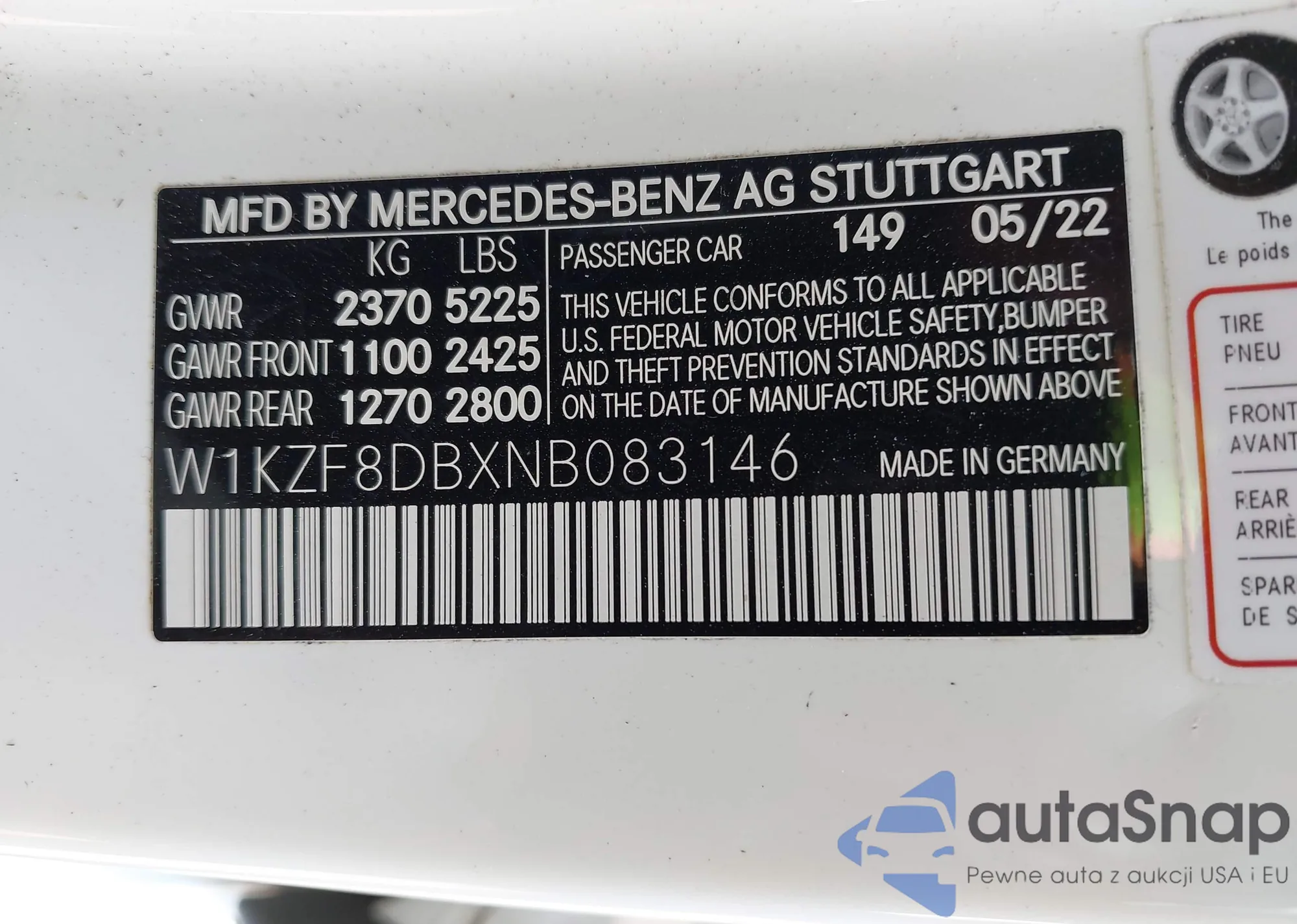 VIN: W1KZF8DBXNB083146