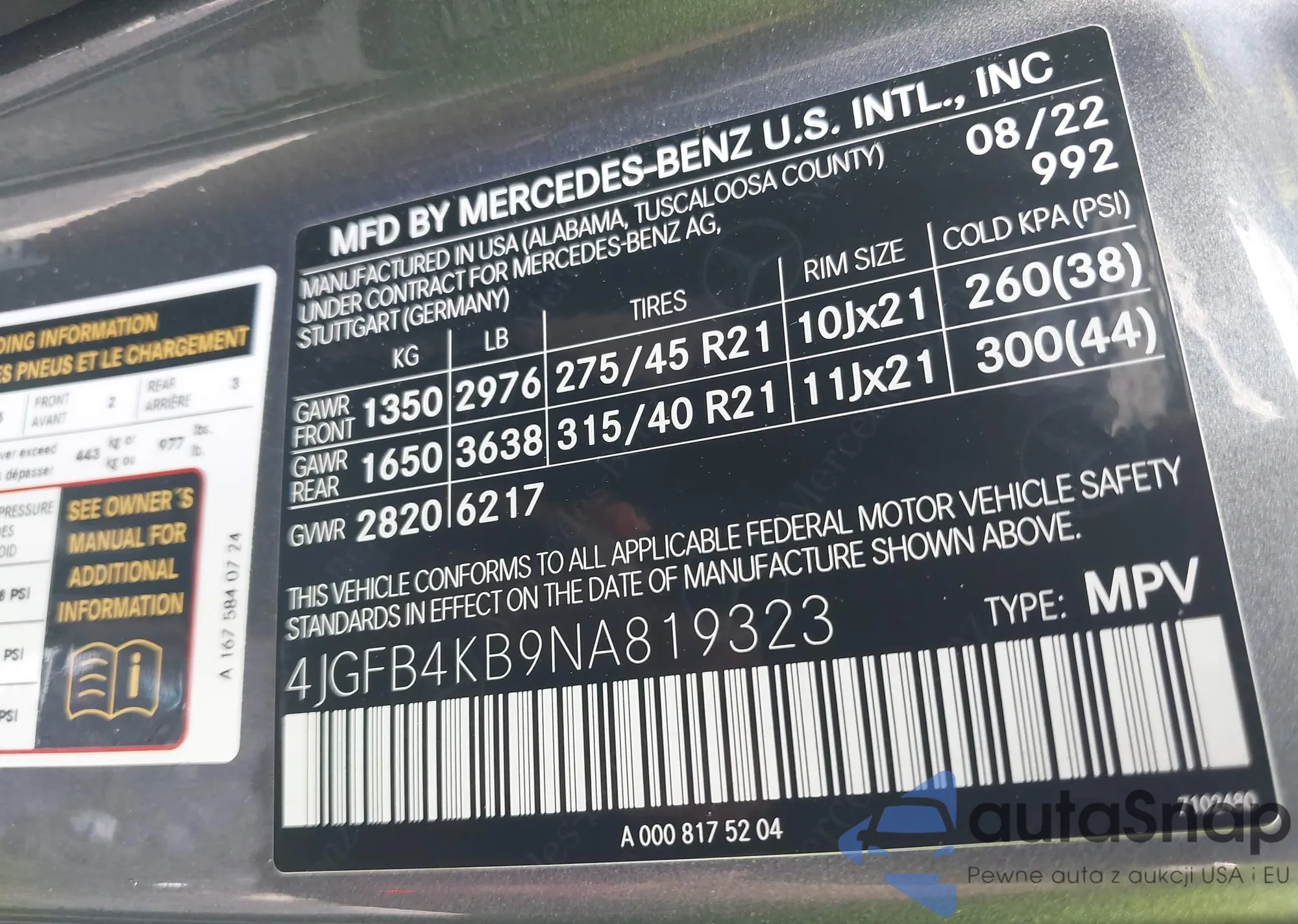 VIN: 4JGFB4KB9NA819323