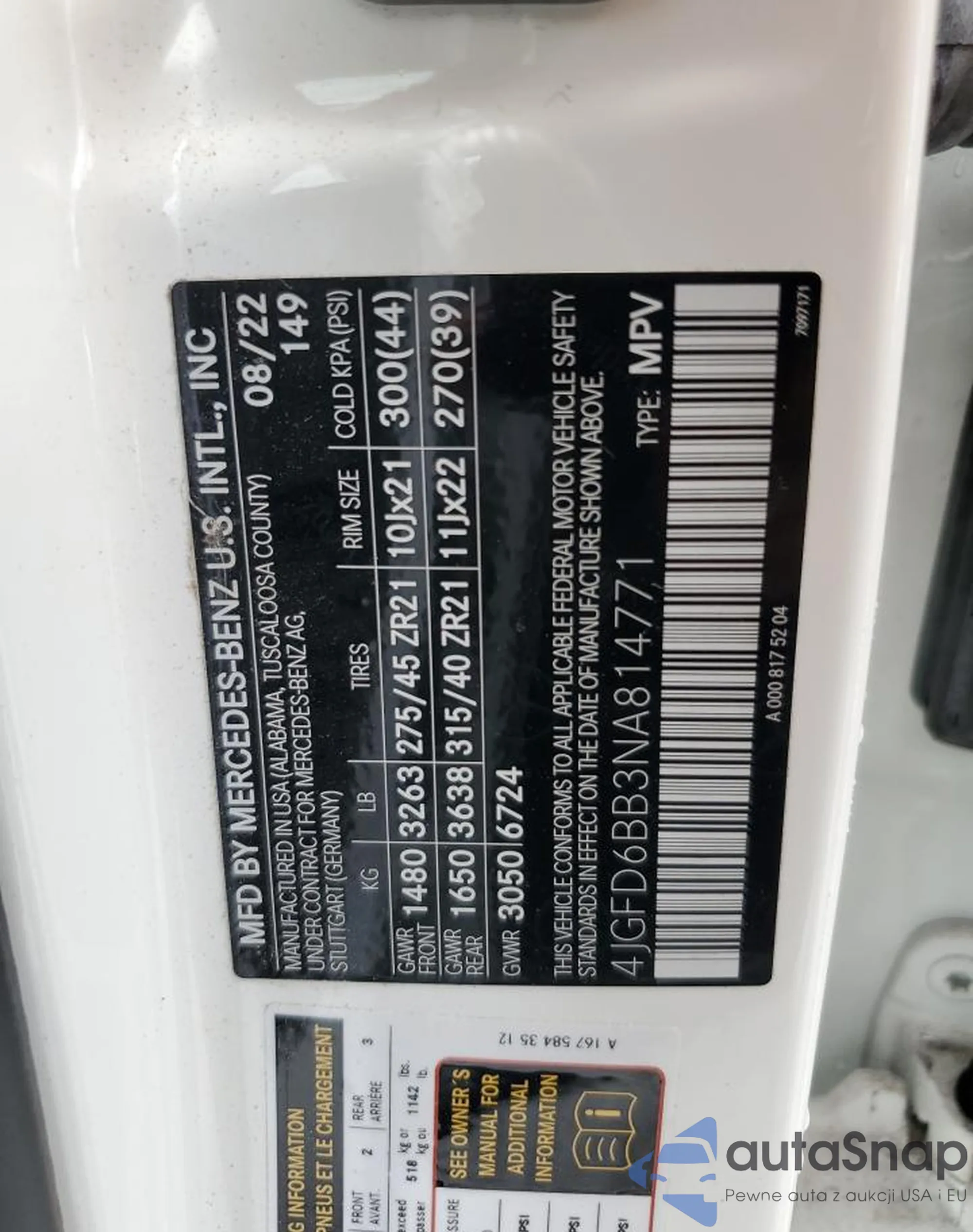 VIN: 4JGFD6BB3NA814771