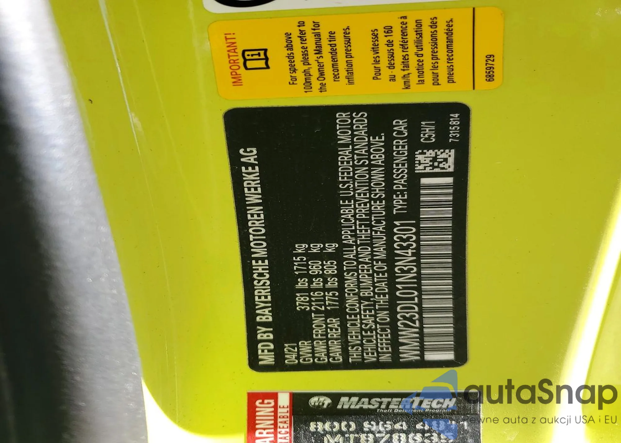 VIN: WMW23DL01N3N43301