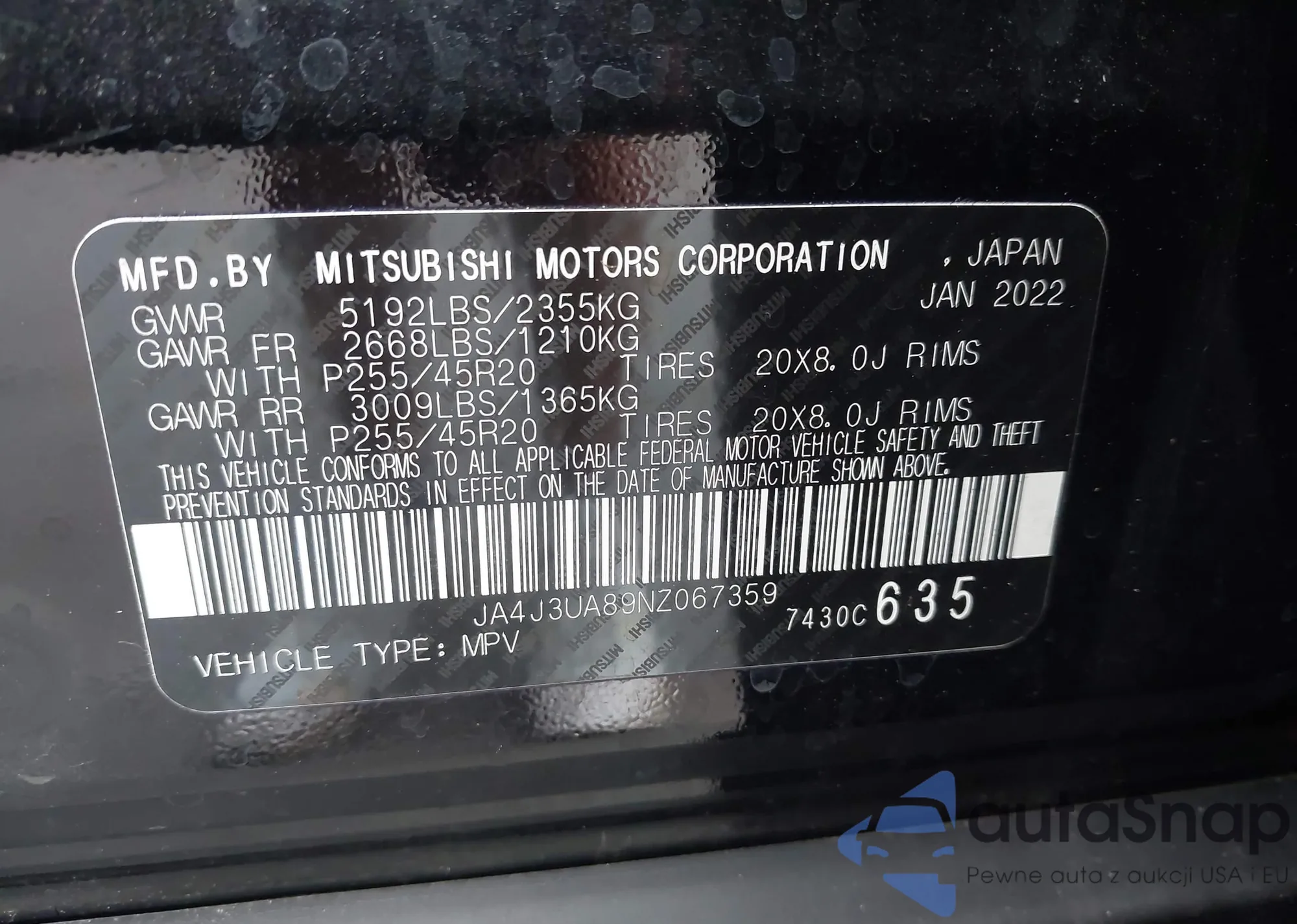 • VIN: JA4J3UA89NZ067359