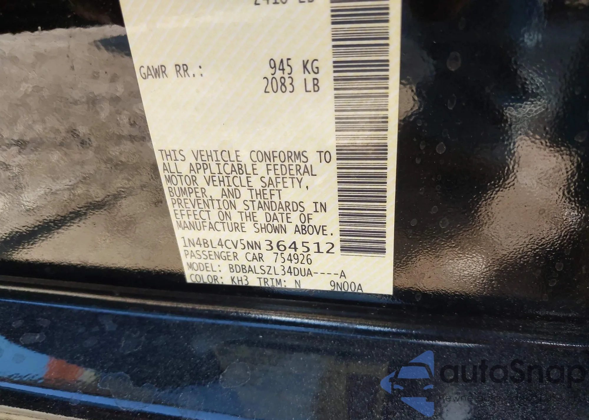 VIN: 1N4BL4CV5NN364512