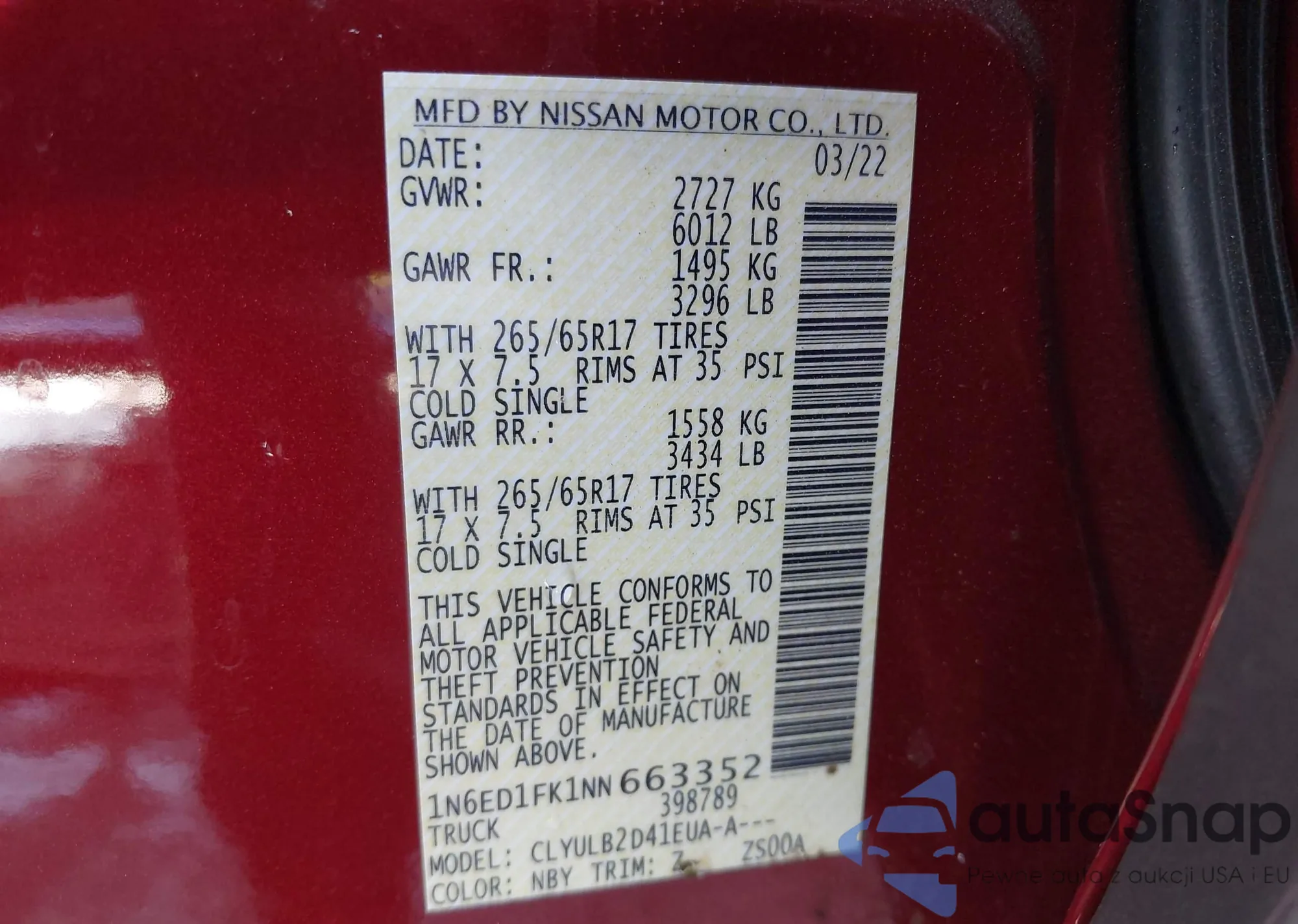 VIN: 1N6ED1FK1NN663352