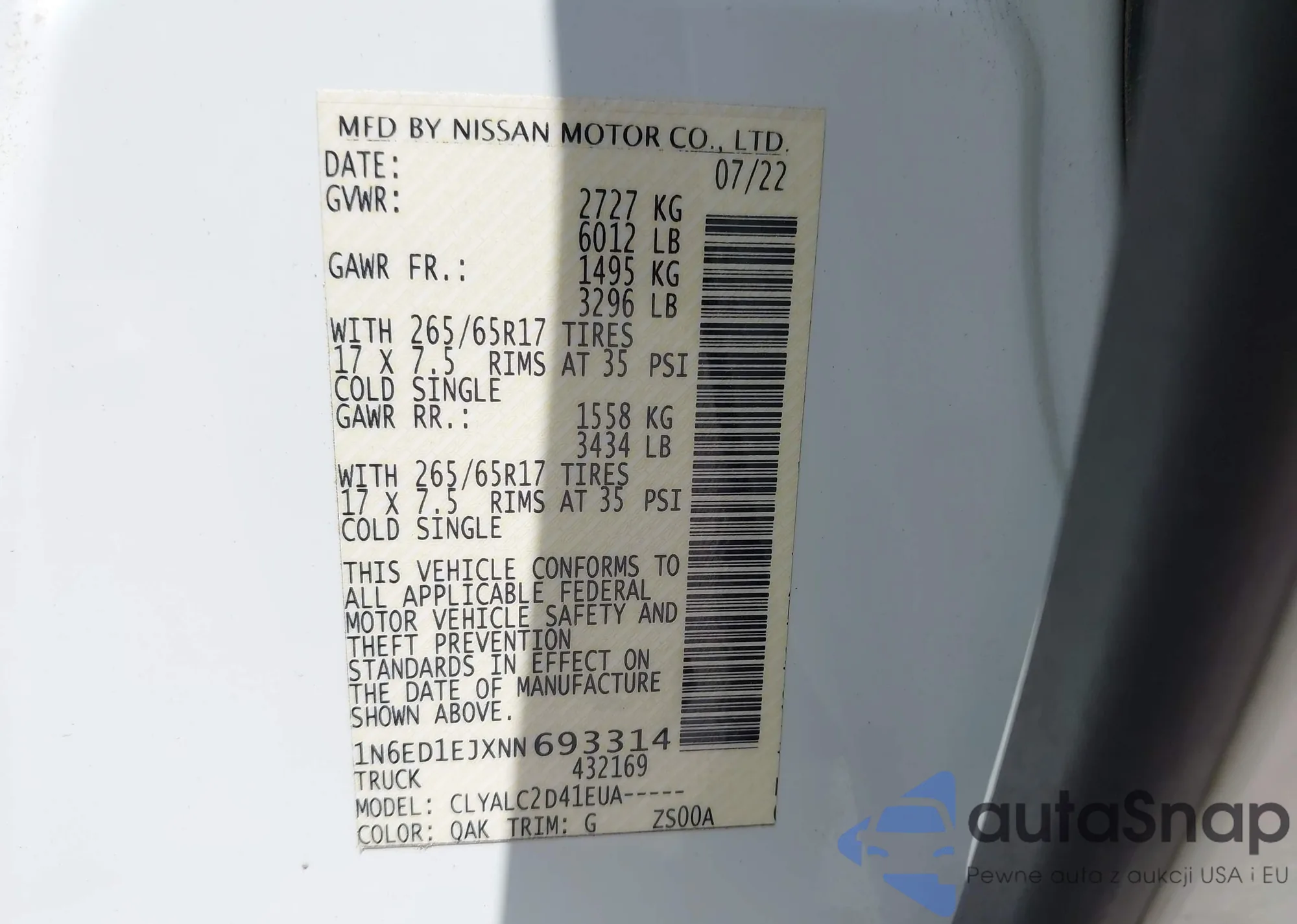 VIN: 1N6ED1EJXNN693314