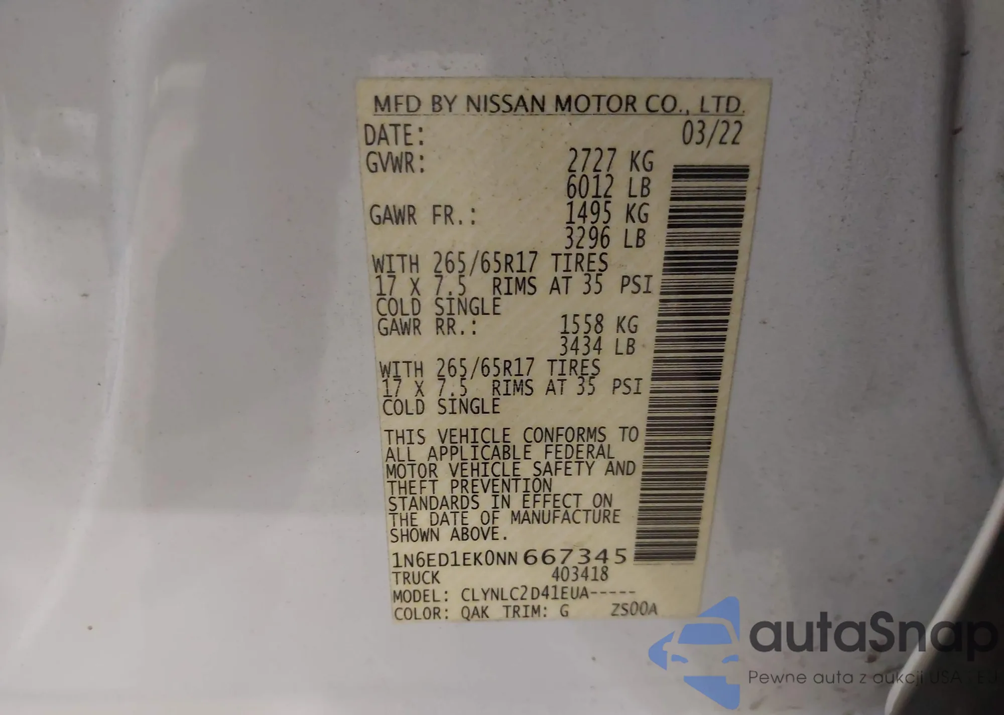 VIN: 1N6ED1EK0NN667345