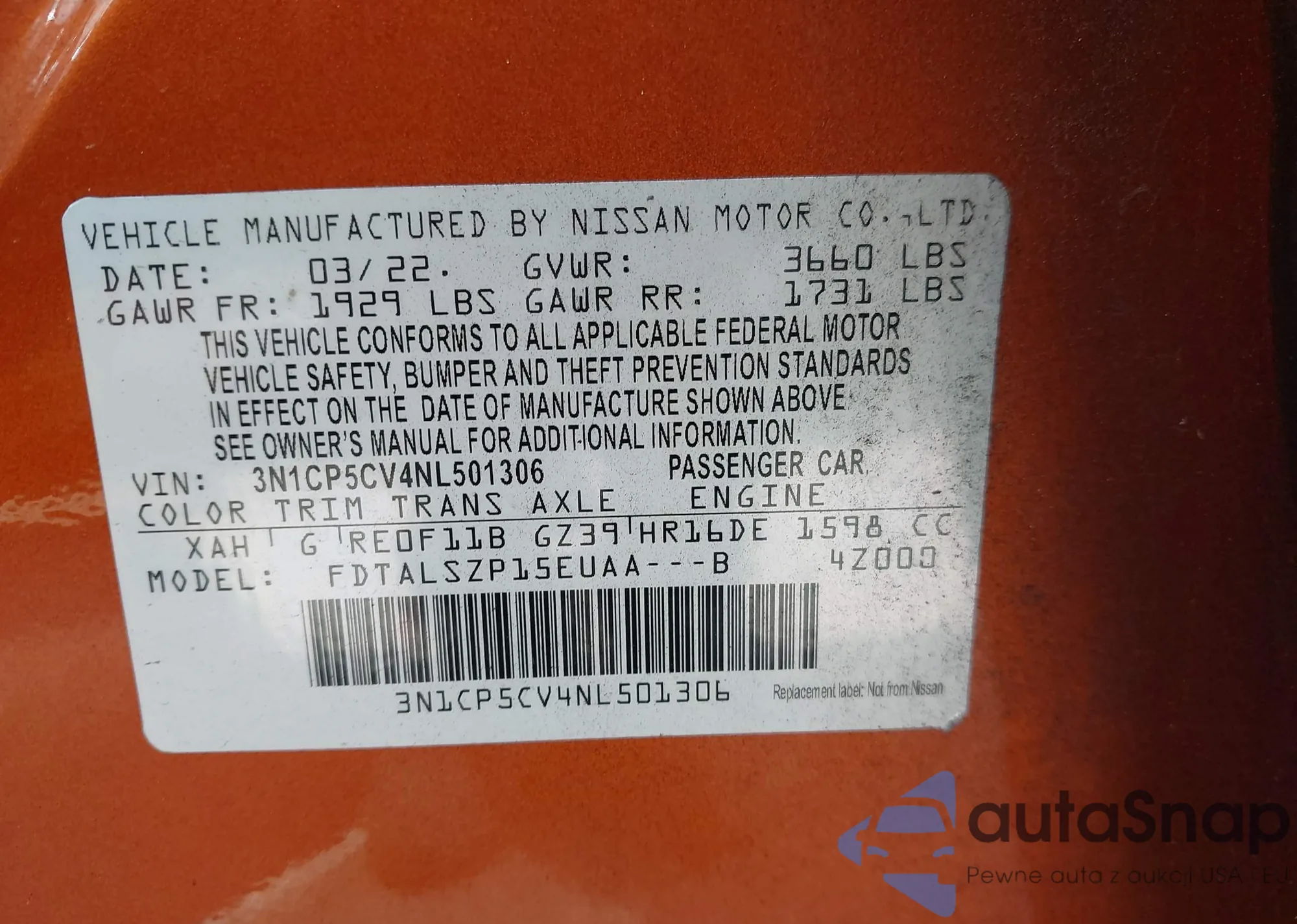 VIN: 3N1CP5CV4NL501306