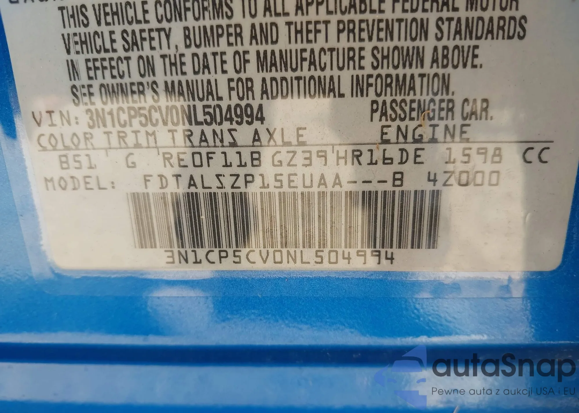 VIN: 3N1CP5CV0NL504994